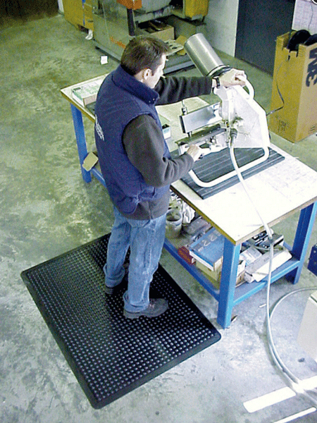 Résistant à l'eau et aux intempéries. Tapis antifatigue pour postes de travail | Sorb Stance - Notrax Tapis de travail « Bubble » pour un meilleur confort debout en intérieur et en extérieur. Hypoallergénique et sans odeur. ✅ Tapis anti-fatigue : le tapis à picots a un effet amortissant les chocs et le bruit, est hypoallergénique, sans odeur et imperméable et donc résistant à l'humidité Tapis de travail polyvalent en caoutchouc naturel - Le tapis de travail « Bubble » résistant aux intempéries en caoutchouc 100 % naturel est un véritable multi-talent et est très polyvalent (intérieur et extérieur) Grâce à ces propriétés, le tapis en caoutchouc à structure à picots est idéal comme tapis de travail pour l'intérieur et l'extérieur et augmente la sécurité, le confort et l'ergonomie sur le lieu de travail. Tapis antifatigue - BF01070 series - COBA Europe Ltd - antidérapant Absorbe les chocs et le bruit. Le tapis de travail « Bubble » résistant aux intempéries en caoutchouc 100 % naturel est un véritable multi-talent et est très polyvalent. Épaisseur : environ environ 14 mm. Tapis à picots PMR en caoutchouc - Direct Signalétique Tapis 90x250 Cm épaisseur 14mm Tapis De Travail Anti-fatigue En Caoutchouc : Commandez Sur - Revêtement De Sol Pour Atelier Garage Extérieur Sa surface élastique absorbe l'énergie de mouvement et rend la position debout beaucoup plus agréable.