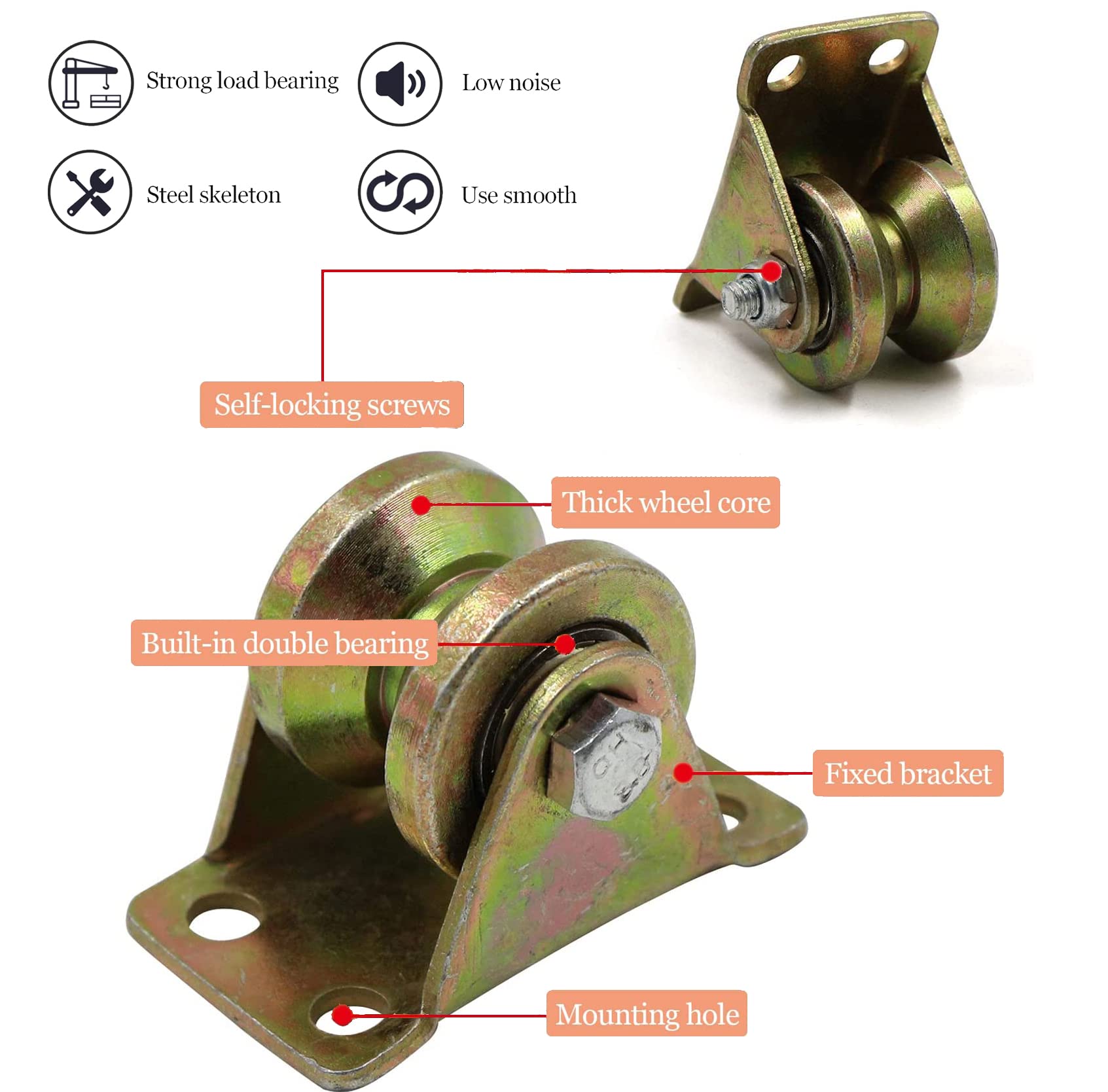 Il peut réduire les vibrations, le bon fonctionnement., 3., Largement utilisé dans la fabrication automobile et d'autres lignes de production automatisées et divers équipements mécaniques généraux. La surface est galvanisée à chaud et antirouille 2., Haute résistance, bonne stabilité, faible fluage, résistance à l'usure et stabilité chimique. 【Notes d'application】: Rail Roulette Portail Coulissan Il peut être utilisé avec du fil d'acier, de la corde et du câble, et a une excellente capacité de charge. 【Conception d'économie d'énergie】: La bobine solide empêche la corde de se tordre. Contenu de l'emballage : 4 * poulies folles La couleur affichée sur l'image peut ne pas correspondre entièrement à l'objet réel en raison de la méthode de prise de vue et du dispositif d'affichage. Roue de portail en acier à gorge V, charges 100 à 600 Kg (série N110) · Les cotes sont exprimées en mm et les charges en kg · Les charges indiquées dans le... Cikonielf rail scellé Roulette rigide de 50 mm à rainure en V avec La partie supérieure est fixe et le cordon est facile à utiliser. pour une utilisation intérieure et extérieure. 【Scènes à utiliser】 : Roue à Rouleaux à Rainure en V Vous pouvez bricoler des équipements de gym à domicile, des accessoires de fitness et des machines à poulies. Il réduit les vibrations et fonctionne silencieusement. Poulie Pour Câble Corde Roue De Rail à Rainure En V, 2 Poulies Fixes En Acier Inoxydable 304 Galet Roulement Acier Galvanisé Find many great new & used options and get the best deals for 4 Pièces Poulie de Levage Mouflage Roulette à Rainure en V Roulette de Levage... at the best online prices at ! Free shipping for many products Veuillez vous assurer que cela ne vous dérange pas avant d'acheter, merci Avec une structure compacte, facile à utiliser. Solide et durable, résistant à la corrosion et étanche. Fonctions : 1., Solide et durable, a une longue durée de vie. Matière : Acier épaissi. Ou poulies, garages, cordes à linge, palans, etc.