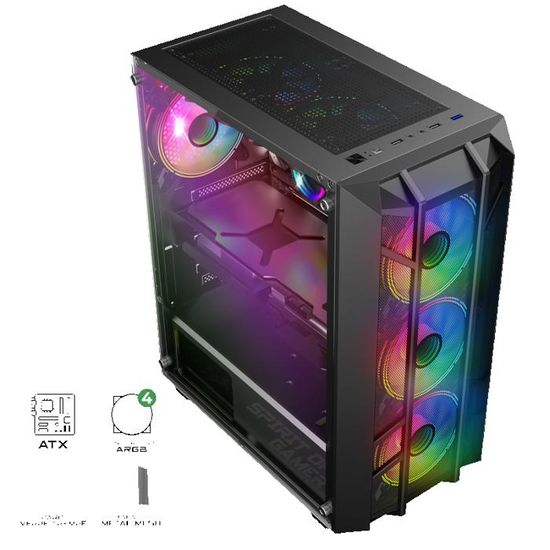 Boîtier PC Gamer - SPIRIT OF GAMER - VIPER CRX DARK - Écran LCD - Refroidissement ARGB - Design en verre trempé - Informatique Watercooling 240mm Boitier PC Gamer - SPIRIT OF GAMER - Clone 4 ARGB - Moyen Tour ATX - Ventilateurs RGB - Verre Trempé - Informatique Tour Pc En le commandant, vous bénéficierez d'une garantie de 24 mois et d'un service client qui se tient à votre disposition Une alternative pour tous les types de joueurs qui souhaitent bénéficier d’un gameplay optimal sans se ruiner. Compatibilité Étendue : Connectez cartes mères ATX, mATX, ITX et cartes graphiques jusqu’à 290 mm, ventirad CPU 155 mm max, parfait pour concevoir une tour PC gamer puissante et personnalisée Refroidissement Efficace : 4 ventilateurs ARGB 120 mm inclus support watercooling 120/240 mm (déplacez 2 ventilateurs pour ajouter le watercooling 240mm), assurant un flux d’air optimisé et une température maîtrisée même lors de sessions gaming intenses Design premium : Façade métal mesh + verre trempé, châssis acier SPCC robuste, filtres anti-poussière amovibles et gestion des câbles intégrée pour un boitier PC gaming aussi esthétique que pratique Comparez les prix pour Boitier spirit of gamer. Affichez les offres et comparez les marchands avec leDénicheur Investissez avec Confiance : Ce boitier pc gamer dispose du meilleur rapport qualité/prix. Informations Technique de la tour gaming : Principales caractéristiques : Carte graphique VGA compatible : longueur 290 mm max Format(s) compatible(s) : ATX, mATX, ITX Ports d'extension : x7 Ventirad ou Watercooling CPU compatible : hauteur 155 mm max Panel I/O : 1 x HD Audio (Casque/ Micro) 1 x USB 3., 0 / 2 x USB 2., 0 Bouton Power Indicateurs LED / Reset(ou RGB) RGB Adressable : Compatible : Asus Aura Sync, RGB Fusion Ready, MSI Mystic Light Sync, ASROCK Polychrome Sync Baies : HDD 3., 5 x 1 SSD 2., 5 x 1 Ventilateurs préinstallés (inclus) : Arrière : 1 x 120 mm ARGB préinstallé Avant : 3 x 120 mm ARGB préinstallés Emplacements ventilateurs (non inclus) : Compartiment PSU : Emplacement pour 2 ventilateurs 120 mm Haut : Emplacement pour 2 ventilateurs 120 mm Conception : Alimentation ATX (150 mm max) , non incluse Boitier (L*l* h) : 33., 8 x 19., 2 x 44., 7 cm Châssis (L*l* h) : 30., 5 x 19., 2 x 43., 5 cm Câble management Emplacement dans le compartiment spécial isolation thermique Façade en metal mesh +ABS Filtres poussière amovibles Kit de visserie inclus Paroi en verre trempé / Châssis Acier SPCC 0., 4 mm Parois ouverture vis Poids : 3 Kg Watercooling supportés : Arrière : 120 mm max Avant : 240 mm max