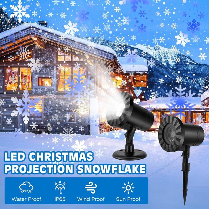 Projecteur de flocons de neige/flocons de neige : de nombreux points de neige/flocon de neige se déplacent automatiquement, combinaison statique/dynamique/scintillement, télécommande sans fil. Le projecteur LED blanc de chute de neige comprend les outils nécessaires pour vous permettre de l'installer. Avec le long piquet, vous pouvez le coller dans le sol de votre jardin ou cour. Il crée une atmosphère romantique qui met en valeur votre environnement. Parallèlement, la lumière peut supporter le froid en hiver, la plage de température de fonctionnement est de -20 à 50 ℃. Projecteur Fête Avec Télécommande Projecteur De Neige - AZWIX - Effet Chute De Neige - Étanche IP44 Projecteur Neige LED Noël Elle brillera et verra la neige romantique tomber du ciel, décorez toute votre maison ou votre cour avec un seul projecteur de Noël Décoration de Noël parfaite : le projecteur de neige LED est un excellent choix pour les décorations de Noël intérieures et extérieures. Caractéristiques : Couleur : noir., Forme : flocon de Technologie plus lumineuse et haut de gamme : le projecteur de lumières de chute de neige est fabriqué avec une puce LED haute luminosité, il se débarrasse de la soudure traditionnelle pour renforcer la durée de vie et augmenter la luminosité. SUGUREII Projecteur Noel Extérieur, Projecteur De Noël avec... Description : Projecteur de Noël d'extérieur – Projecteur de flocons de neige de Noël étanche – Lampe de projection LED de chute de neige pour extérieur, fête, jardin, terrasse Caractéristiques : Projecteur de flocons de neige : les flocons de neige blancs se déplacent automatiquement, projection sur le mur ou la maison, ajoutent un mouvement dynamique à votre affichage de vacances en plein air, et rendent la nuit plus belle, peut vous apporter une atmosphère luxueuse, romantique et chaleureuse. Type de finition : projecteur. Les flocons de neige blancs rotatifs sont conçus pour imiter l'apparence de la neige tombante avec un gros flocon de neige, même si vous vivez dans un endroit qui ne fait pas assez froid pour la neige, vous pouvez toujours profiter de la beauté d'un Noël blanc. Avec le socle rond, vous pouvez le placer sur un sol solide ou le fixer au mur avec des vis. Bienvenue sur notre espace dédié aux projecteurs Noël extérieur ! Véritable atout pour transformer votre façade, terrasse, allée ou jardin en un univers féerique, le projecteur lumineux de Noël est devenu un incontournable des décorations festives MHGLOVES Projecteur Noël Exterieur, Projecteur LED Exterieur Noël Effet Chute De Neige, Décoration De Noël Exterieur Imperméable Ip44 pour Décoration Extérieure Et Intérieure De Noël Créez une scène de neige réaliste pour célébrer vos vacances préférées.