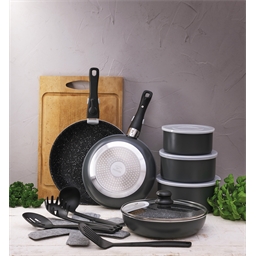 REVÊTEMENT ANTIADHÉSIF EN CÉRAMIQUE - La batterie de cuisine Genua est équipée casseroles, poêles et faitouts en aluminium inoxydable avec un revêtement antiadhésif céramique, facilitant la cuisson sans ajout de matière grasse et un nettoyage rapide. Données techniques :Grande poêle Dimensions avec poignée et couvercle 44 x 27,5 x 13 cm / intérieures (ØxH) 26 x 6,5 cm, Volume : 3,4 L, Poids : 0,65 kg Grand couvercle (ØxH) : 27 x 4 cm Petit couvercle (ØxH) : 21 x 4 cm Grande protection en silicone : 23 x 21,5 x 0,5 cm Petite protection en silicone : 21 x 19,5 x 0,5 cm Spatule : 30 x 7 x 3 cm, Louche : 32 x 8 x 5 cm Protège-casserole (Ø) : 38 cm Matériaux : aluminium avec revêtement céramique, verre, silicone, nylon, bakélite, polyester, acier inoxydable Contenu : 3 poêles, 2 casseroles, 2 couvercles de casserole, 2 couvercles en silicone, 2 poignées, 3 protège-casseroles, Spatule, Louche, Notice ACCESSOIRES ESSENTIELS POUR UNE CUISINE PRATIQUE - En plus de cet ensemble casserole et poele de qualité, la batterie inox comprend des accessoires de cuisine essentiels : trois protège-casseroles et des couvercles en verre et en silicone. Poignée Dimensions : 18,5 x 4 x 5 cm, Poids : 0,2 kg tectake Batterie de casseroles GENUA de 16 pièces, adaptée à Un lot de poele et casseroles pour induction pour des résultats parfaits à chaque utilisation. AVEC POIGNÉES AMOVIBLES POUR POÊLES ET CASSEROLES - Les poignées amovibles, pratiques et résistantes à la chaleur, vous permettent de personnaliser votre batterie cuisine tout feux selon vos besoins. KADAX Couvercle en Verre pour Poeles et Casseroles, Couvercle Résistant à la Chaleur avec... Set Casseroles Poêles Induction Tectake Tectake Batterie De Cuisine TURIN 15 Pièces, Acier Inoxydable, Adaptée à L'induction - Argent Kit Cuisine Complet Avec Couvercles Et Accessoires Idéal pour tous types de plaques (induction, Cuisinère gaz, électrique ou vitrocéramique), cette batterie cuisine inox vous permet de cuisiner comme un pro à la maison. Petite poêle Dimensions avec poignée et couvercle 38 x 21,5 x 9,5 cm / intérieures (ØxH) 20 x 4,5 cm, Volume : 1,4 L, Poids : 0,4 kg Découvrez le set de casseroles polyvalent Genua de . Avec trois poêles, deux casseroles, deux couvercles, deux poignées amovibles, deux couvercles en silicone supplémentaires, des ustensiles de cuisine et des protège-casseroles, vous êtes parfaitement équipé pour toutes les situations Grande casserole Dimensions avec couvercle (ØxH) 21,5 x 9,5 cm / intérieures (ØxH) 20 x 9 cm, Volume : 2,8 L, Poids : 0,55 kg Vous pouvez cuisiner tout en préservant les saveurs, sans craindre que vos plats cuisinés n'adhèrent. Description : Découvrez le set de casseroles polyvalent Genua de tectake. Avec ce kit cuisine / set cuisine, vous êtes prêt à cuisiner tous vos plats préférés, tout en préservant les revêtements antiadhésifs et en évitant les éclaboussures.