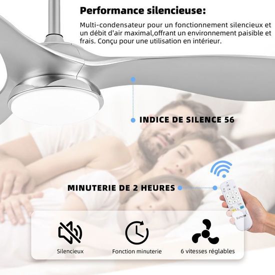 Décoration Salon Chambre YUNZI Ventilateur Plafond 69cm Avec LED - Moteur DC Silencieux | 6 Vitesses | Télécommande | Or/Argent Ventilateur Lumière Led Lustre Chambre Enfant Chambre Ventilateur De Plafond Reversible Avec Telecommande 6 Ventilateur Plafond Design Moderne Si vous avez des questions concernant l'installation et la qualité, veuillez nous contacter, nous vous proposerons la meilleure solution dans les 24 heures. Tension du ventilateur de plafond : 220 V. Ce ventilateur de plafond avec éclairage intégré présente un design moderne et créatif en forme de pétales qui ajoute une touche de style à n'importe quelle pièce. Large application] Le ventilateur de plafond avec lère présente un design de pétale créatif moderne avec un ventilateur à 6 vitesses, adapté au salon, à la chambre, à la salle à manger, au bureau, etc. de 8 à 15 Il convient à toutes les saisons, que ce soit pour les chaudes journées d'été ou les mois plus frais, il offre la meilleure solution de confort. Ventilateur de plafond intelligent avec minuterie – diamètre de 132 cm et hauteur de suspension réglable (12,5/25/60 cm). Moteur CC silencieux (moins de 35 dB), éclairage LED 18 W à intensité variable avec 3 températures de couleur et mémorisation automatique du dernier réglage. Télécommande incluse pour la minuterie et le sens de rotation. Contrôle intelligent de l'éclairage... Si vous craignez de laisser le ventilateur en marche pendant la nuit, la fonction de minuterie intelligente assure sécurité et confort : le ventilateur s'éteint automatiquement, garantissant un environnement de sommeil sain et reposant. Abat-jour en acrylique, lumière uniforme et transparente ; pales du ventilateur en ABS de haute qualité, rotation plus douce.