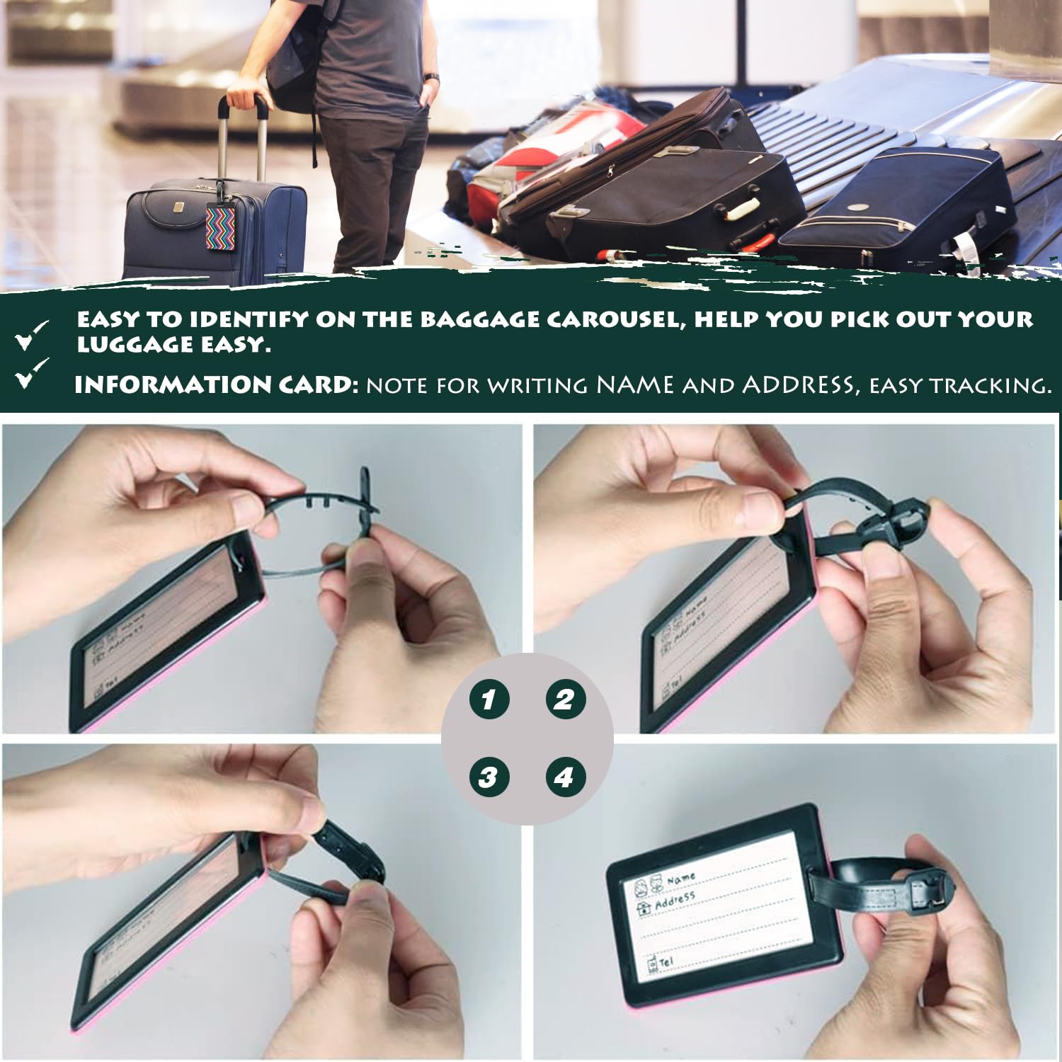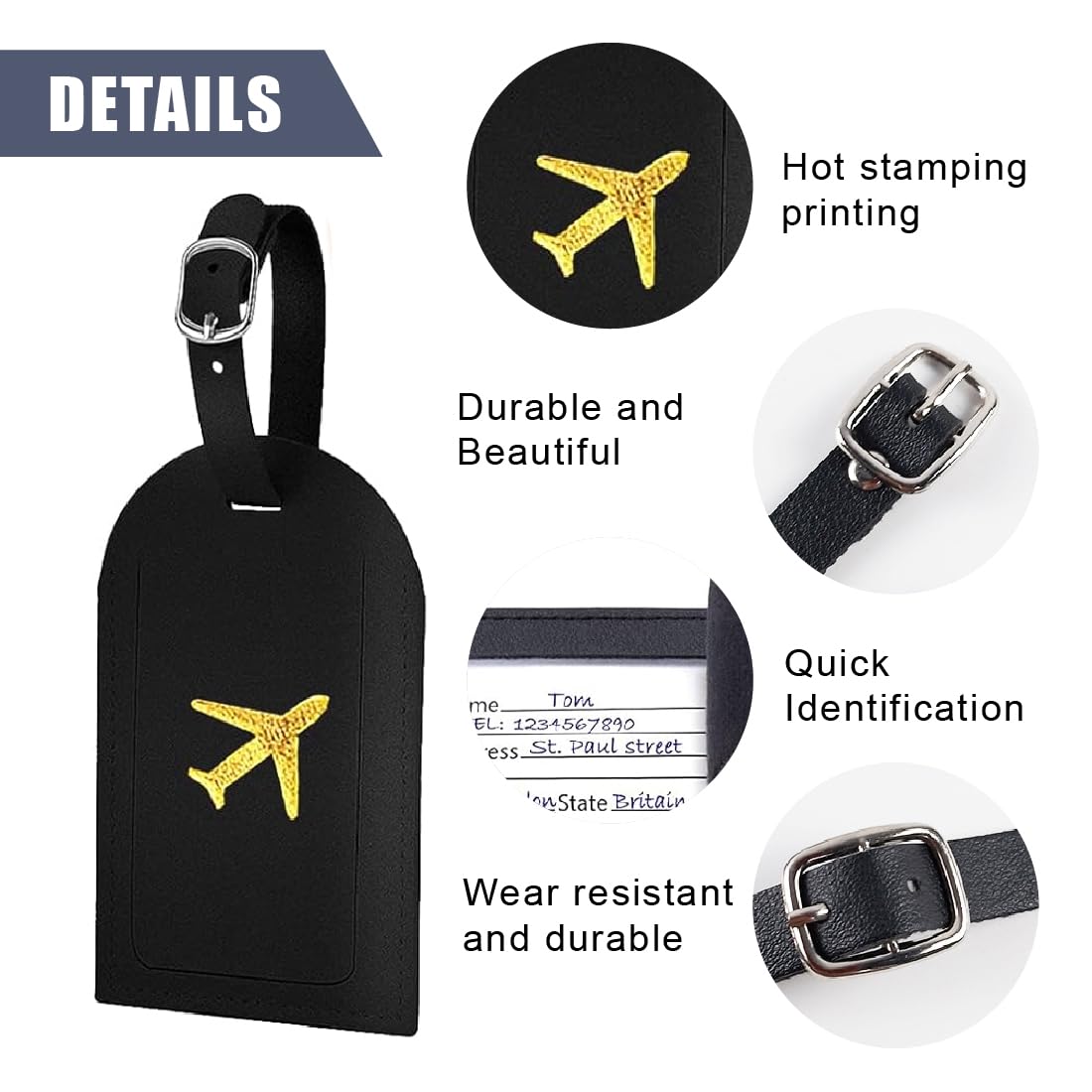 Lot de 4 Etiquette Valise, Étiquette Bagage en Cuir, Etiquette Valise Voyage Avion avec Boucle Réglable, Inscriptible, Accessoire Voyage pour Sacs à dos, Valises, Sacs à Main Équipée d'une boucle réglable, l'étiquette de bagage reste fermement fixée à la valise, au sac de voyage ou au sac à dos étiquettes Bagages Cuir PU Etiquette Bagage Avion 4pcs Étiquettes De Bagage En Cuir Avec Sangle Réglable étiquettes Valise Avion Etiquette Valise Enfant Spécifications du produit :Type de produit : Ensemble d'étiquettes à bagagesQuantité : 4 pièces (rose*1, noir*1, gris*1, bleu clair*1)Matériau : PUTaille de l'étiquette : 11 x 7 cmComprend : 4 étiquettes à bagages avec sangles réglables et carteCaractéristiques du produit :Protection de la vie privéeLe rabat de l'étiquette de bagage permet de protéger vos informations. La carte en papier incluse vous permet d'inscrire clairement vos informations personnelles afin d'éviter la perte de vos bagages Que vous voyagiez en avion, en train, en bus ou en bateau, ces étiquettes de bagages sont des accessoires pratiques Avec de belles étiquettes pour valises, retrouvez facilement vos bagages où que vous partiez ! ... mettre une étiquette pour valises au sac de Vic avec son nom et... Etiquette de bagage,Bleu--Étiquette de bagage portable en cuir PU Léger et polyvalent : le design fin et compact de l'étiquette de bagage nominative peut être facilement attaché aux valises, aux bagages à main, aux sacs de sport, aux sacs d'ordinateur portable, aux poussettes ou aux cartables., Conseils d'utilisation :1., En raison des mesures manuelles, il peut y avoir une erreur de 1 à 3 mm dans la taille du produit., 2., En raison de la diversité des écrans et des effets de lumière, la couleur réelle du produit peut être légèrement différente de celle de la photo. Ensemble d'étiquettes de bagages : Le set d'étiquettes à bagages avec étiquettes d'adresse contient quatre étiquettes à bagages en rose, noir, gris et bleu clair, ce qui vous permet d'identifier rapidement vos bagages lors de la récupération des bagages Chaque étiquette de bagage contient une carte d'information qui peut être utilisée pour enregistrer vos informations personnelles, ce qui vous permet de reconnaître plus facilement vos bagages sur le tapis roulant et d'éviter les pertes accidentelles.