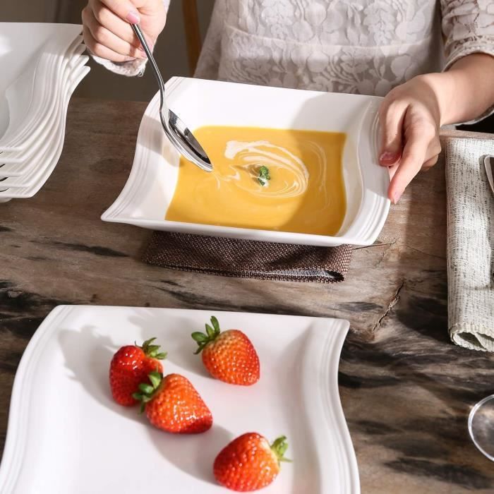 Entretien : compatibles lave-vaisselle (éviter les programmes trop abrasifs pour préserver le doré) Dimensions : 21., 5 x 21., 5 x H4cm. Assiette à dessert en céramique blanche et dorée Kintsugi | Maisons du Monde Parfaites pour servir soupes, pâtes, risottos ou plats en sauce, elles apporteront une touche chic et sophistiquée à toutes vos tablées Parfaites pour servir soupes, pâtes, risottos ou plats en sauce, elles apporteront une touche chic et sophistiquée à toutes vos tablées. Un indispensable pour vos dîners festifs ou vos repas du quotidien avec une touche d'élégance ! Découvrez notre lot de 6 assiettes creuses Sélène : . 6 assiettes creuses avec liseré argenté - 20,8x5cm . Fabriquées en 100% porcelaine . Couleur : blanc et argent Apportez une touche d'élégance lunaire à votre table avec ces assiettes creuses. La collection Sélène se distingue par un délicat liseré argenté, rappelant la douceur des reflets de la lune. Parfait pour sublimer vos... Conçu en porcelaine. Set de 6 assiettes creuses blanches en porcelaine avec liseré doré (Ø21,5cm). Assiettes Creuses Porcelaine Blanche Set De 6 Assiettes Creuses Blanches En Porcelaine Avec Liseré Doré (21,5cm) - AURA - Gamm Vert Set Assiette