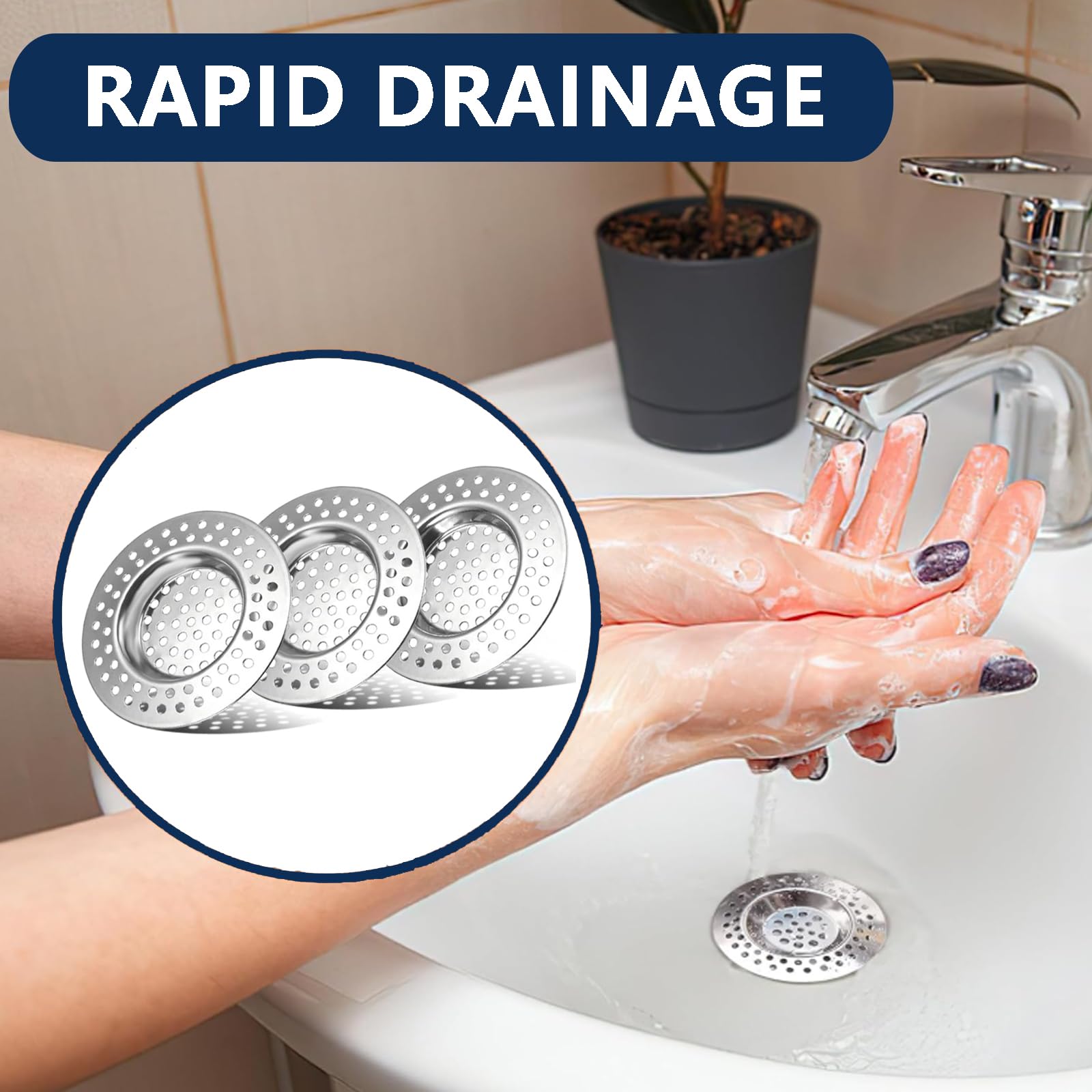 Filtre pour évier de cuisine - Paquet de 3 filtres de drainage Attrape Cheveux Douche Filtre Evier Cuisine Inox (lot De 4) - 7,5, Filtre évier Lot 3 Filtres Acier Inoxydable Qualité et service fiables : nous soutenons la qualité de nos produits. Récupère efficacement les restes alimentaires, les cheveux et les petites pièces lors de l'écoulement et empêche efficacement les blocages dans la cuisine et la salle de bain. Pratique et efficace : il suffit de le placer dans le drain – c'est prêt. Filtre Cheveux Douche, 3 Pièces Filtre Evier Cuisine, INOX Sink Drain Strainer, Filtre D'évier pour Cuisine, Salle de Bain, Balcon. Filtre Douche. Cuisine & Maison. Filtre fin pour améliorer l'efficacité de la filtration Le design en maille fine avec perforations haute densité permet à l'eau de s'écouler de manière optimale, mais retient mieux les résidus alimentaires et les particules que les tamis avec de grands trous. Anti-obstruction]: Le filtre à cheveux de douche adopte une conception à pores fins, qui non seulement filtre efficacement la saleté, mais draine également en douceur, empêchant ainsi le colmatage du canal.[Matériau de haute qualité]: Le filtre d'évier est fabriqué en acier inoxydable 304, avec des bords soigneusement polis, une finition soignée, résistant à la rouille et... Ajustement optimal et contenu de la livraison : chaque passoire a un diamètre extérieur de 75 mm et un diamètre intérieur de 45 mm., Lot de 3., Veuillez mesurer votre trou de vidange avec précision avant l'achat pour garantir la compatibilité parfaite de votre nouveau filtre d'évier ou de votre crépine d'évier de cuisine. Les bords lisses protègent votre évier et vos mains des rayures.