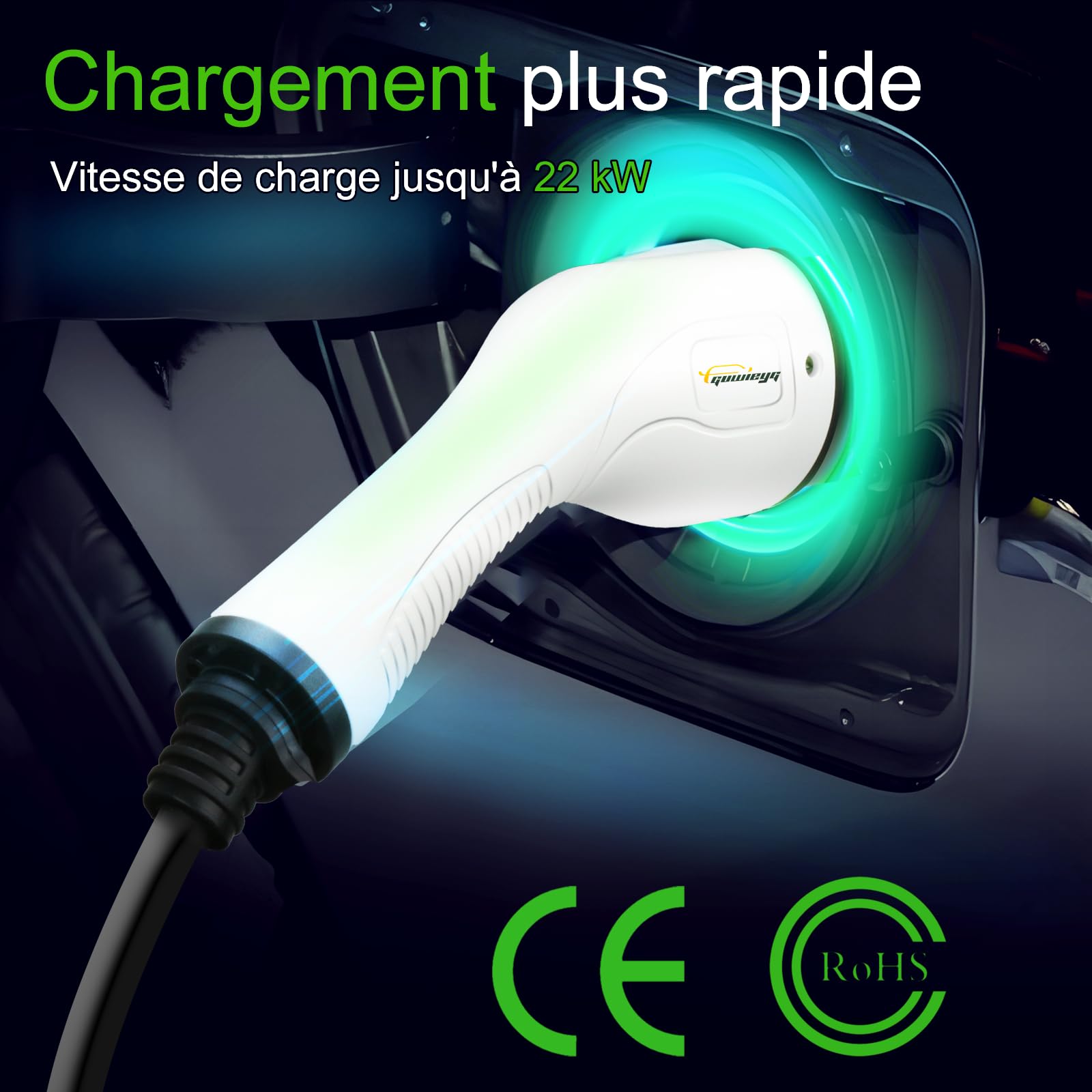 Protection contre les surtensions, les sous-tensions, les courts-circuits, les surintensités, les surchauffes, les courants résiduels, la mise à la terre et les surcharges. Câble de recharge BESEN Type2-Type2 - 5m - 22 kW (triphasé 32A) Sac Le Câble de recharge pour véhicule électrique - type 2 vers type 2 - 22kW - 5m est idéal pour recharger votre voiture électrique de type 2 à une puissance maximale de 22kW Ce câble est équipé d'une protection de sécurité complète et d'un câble flexible de 5 m. Pratique et portable : le câble de 5 m permet une recharge flexible, quelle que soit la distance. Rangez-le facilement après la charge, idéal pour vos déplacements. Livré avec un étui de transport et un manuel d'utilisation. Performances de charge rapide : Chargez votre véhicule électrique jusqu’à 22 kW. Test : câble de recharge 22kW type 2 pour voitures électriques Durable et facile à utiliser : Gaine de câble en TPU ignifuge, poignée antidérapante, connecteur PC + fibre optique et capuchon de protection anti-poussière. Spécifications : Tension d’entrée : CA 400 V ±15 % Puissance nominale : 22 kW, triphasé, 220 V Fréquence d’entrée : 50/60 ±3 Hz Courant de sortie : 32 A Température de fonctionnement : -20 °C à +50 °C Altitude de fonctionnement : Gaine du câble : TPU Section du câble : 5 x 6 mm² + 1 x 0,5 mm², Ø 16 mm, longueur 5 m Connecteur : Contacts en cuivre plaqué argent, boîtier PC + fibre de verre Indice de protection : IP67 (étanche en fonctionnement, non étanche à l’arrêt) Poids net : 3,4 kg Contenu de la livraison : 1 câble de recharge pour véhicule électrique Également compatible avec les modèles 11 kW, 7,2 kW et 3,6 kW. Câble de charge triphasé pour une charge efficace et sécurisée des véhicules électriques et hybrides de type 2. Les contacts plaqués argent offrent une protection contre la surchauffe. Conception fiable, capable d'être branché et débranché plus de 10 000 fois Borne De Recharge 7kw Câble De Charge EV Pour Voiture électrique I Type 2 à Type 2 | 22Kw Câble Recharge Type 2 Compatible avec 32 A, triphasé et 400 V CA.