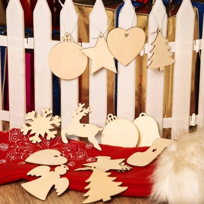 Bois artisanal : Fabriqué à partir de bois de qualité, chaque ornement offre une sensation naturelle et rustique, promettant une durabilité et une joie festive durable, idéal pour la décoration de Noël traditionnelle. Cloche de Noël avec des flocons de neige - Une image à colorier festive Cet ensemble illuminera à coup sûr votre décoration de Noël. Prêt à bricoler : Chaque décoration de Noël en bois est livrée avec des cordons pré-attachés et des perles en bois, offrant une installation rapide et pratique pour vos bricolages de Noël. Les motifs en bois de ces décorations confèrent un attrait rustique et chaleureux, ajoutant un charme irrésistible et traditionnel à votre décoration de Noël. Facile à accrocher : Ces pendentifs en bois avec ficelles sont parfaits pour les décorations artisanales suspendues, adaptées aux arbres de Noël, aux portes, aux fenêtres, aux murs ou à tout autre endroit que vous souhaitez embellir. Convient pour les décorations d'arbre de Noël, les décorations de fête, les étiquettes cadeaux ou comme accents charmants autour de votre maison. MELLIEX 16 Pièces Ornements en Bois de Noël - Pendentifs Tranche en Bois, Décoration Cloches Ange, Bricolage Artisanat Embellissement pour la Décoration Avertissement De Sûreté [AVERTISSEMENT_POSSIBLE_AVERTISSEMENTS : Risque d'étouffement pour les jeunes enfants (petites perles en bois), bords tranchants] Ces décorations de Noël sont méticuleusement fabriquées à partir de bois de qualité, promettant une durabilité et une joie festive durable. Si vous avez des questions, n'hésitez pas à nous contacter. Boules de Noël : Diamètre : 6 cm, Quantité : 16, Matière : Plastique incassableLégères - Ces décorations de sapin sont très légères et n'altèrent en rien la beauté de votre sapin.Chaque boule est munie d'un cordon de suspension, pour une utilisation intérieure et extérieure.Apportez une touche festive et traditionnelle à vos fêtes de fin d'année avec ces boules.Parfaites... Décorations Noël Bois à Peindre DIY Volumoon 16 Pièces Décoration De Noël En Bois Pendentif Sapin Ornements Bois Peinture Enfants Petits conseils : Rangez les ornements dans un endroit sec.