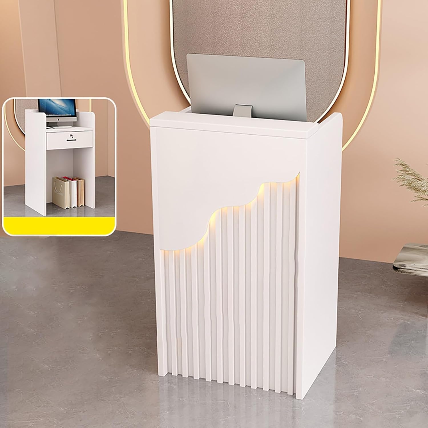En raison de l'unicité du meuble, il peut y avoir une déviation de 1-3 cm/0,39-1,2 pouces dans la taille. Dimensions : 60x40x96cm/23., 6x15., 7x37., 8in 80x40x96cm/31., 5x15., 7x37., 8inEn raison des conditions d'éclairage lors de la photographie et des réglages du moniteur, les images du produit peuvent différer légèrement du produit réel. Table d'accueil pour Bureau De Caisse, Comptoir d'accueil pour Commerce De Détail, Comptoirs d'accueil, pour La Maison, Le Bureau, Le Salon(F2,23.6x15.7x37.8in Les meilleurs matériaux pour les comptoirs de cuisine Conception Efficace : La conception de ce Meuble de réception améliore l'efficacité de la réception, offrant une expérience de service fluide à vos clients. Comptoir d'accueil 3 personnes WAVE MDD Facile à Nettoyer : Ce comptoir de bienvenue dispose d'une surface lisse et de matériaux résistants aux taches, rendant le nettoyage et l'entretien simples, maintenant le bureau d'accueil comme neuf. Apparence Professionnelle : Ce Comptoir présente un design classique avec plusieurs options de couleur, adapté à divers environnements de bureau et espaces commerciaux, améliorant l'image de votre entreprise. Banque D'accueil Comptoir Magasin, Bureau De Caisse Avec Tiroirs, Comptoir De Ru00e9ception Pour Caisse Et Vente Au Du00e9tail, Multifonctionnel Table Avant, Pour Klinik, Salon, Lobby, Bureau, Magasin(White+wood-A,140x55x100c Caisse Enregistreuse Nous nous efforçons d'assurer la cohérence, mais les couleurs et les textures peuvent varier légèrement. Que ce soit pour un salon de beauté haut de gamme ou une boutique de mode tendance, ce comptoir d'accueil s'intègre parfaitement, rehaussant le professionnalisme et le style de l'espace. Facile à assembler, il apporte immédiatement une nouvelle expérience à vos clients et employés.