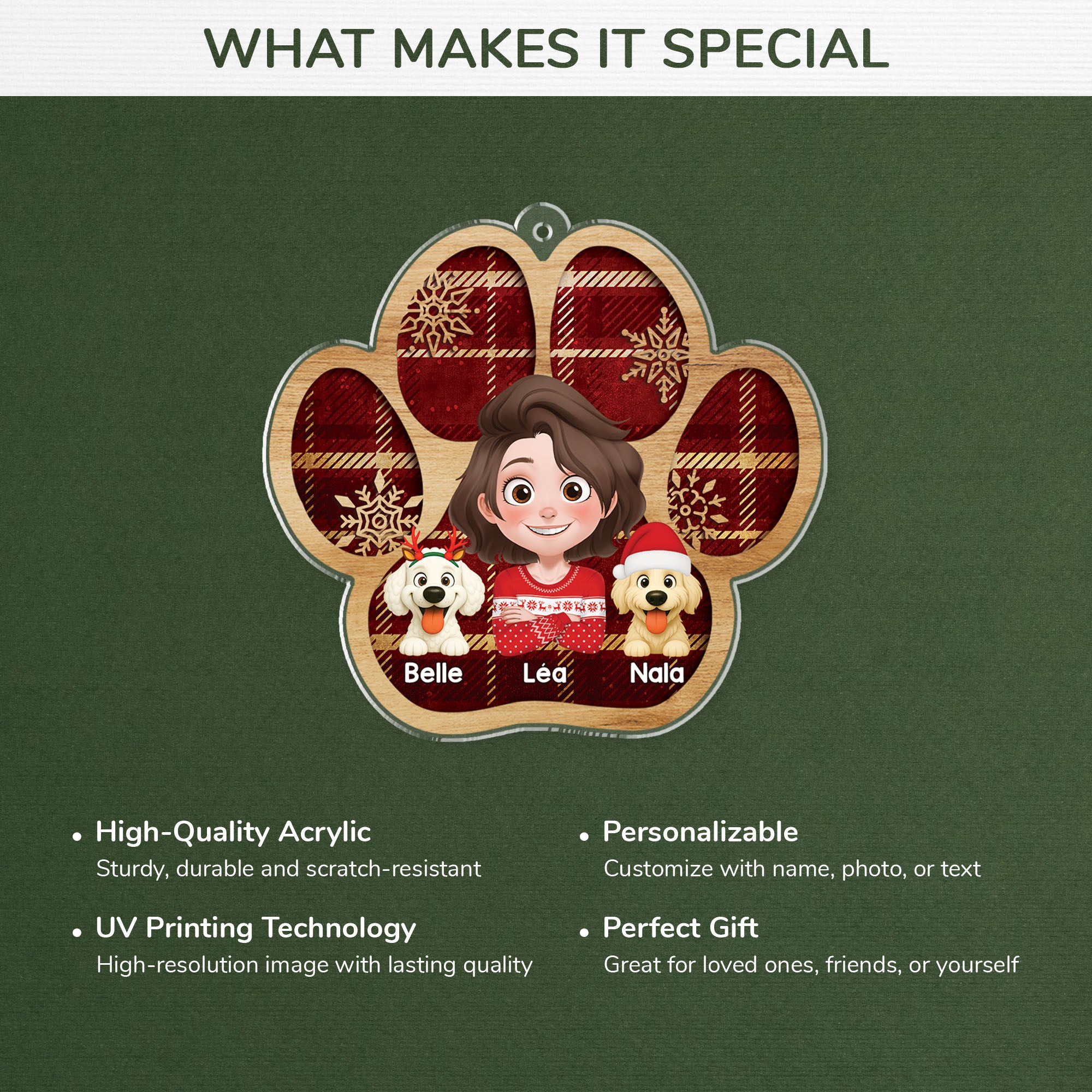 Des oreilles tombantes au corps rond, chaque détail est réaliste et adorable. Caractéristiques du produit : Ce pendentif teckel amusant de Noël 2D est fabriqué en acrylique de haute qualité, avec une impression couleur claire et un design graphique unique et mignon. D'une certaine dureté, il résiste à la casse et à la déformation grâce à une conception soignée et peut rester en bon état pendant longtemps. Elle peut également servir de crochet pour voiture, ajoutant une touche d'originalité et de douceur, pour une conduite sereine et agréable. Il peut non seulement servir de décoration de Noël, mais aussi de crochet pour sac à dos ou voiture, pour ajouter une touche de gaieté à votre intérieur. Ornement de noël en forme d'animal chien teckel, décoration Qu'il s'agisse de l'aménagement d'une fête de Noël hivernale ou d'une décoration d'intérieur de style campagnard, les décorations de Noël en acrylique pour chien s'intègrent parfaitement pour créer une atmosphère chaleureuse et originale. En acrylique, elle peut servir de crochet pour sac à dos, créant ainsi un accessoire personnalisé et unique. Teckel brun, décoraton chen saucsse. Décoraton de chen suspendue... Décoration Noël Animaux Qiblaou Noël Amusantes 9 Pièces Ornement D'noëL Chien Teckel Acrylique Déco Noël Maison Voiture Même s'il est accidentellement taché par l'eau ou la poussière, il peut retrouver sa propreté d'un simple coup d'éponge. Imperméable à l'eau et à la poussière, il est résistant à la casse et son épaisseur de 3 mm garantit sa durabilité. Ornement Noël Personnalisé Acrylique - Moi Et Mon Chien - Cadeau Plus Ce pendentif teckel est idéal pour les fêtes de Noël, les décorations de style campagnard et autres occasions. Grâce à leur forme unique, ils deviennent le point culminant de la décoration et apportent une touche de vivacité à votre décoration de Noël ou d. Description du produit Nom du produit : Pendentif teckel en acrylique. Cet ensemble de 9 pièces peut être décoré à différents endroits ou placé en collection, ajoutant une touche de gaieté et de chaleur à tous ceux qui le voient.