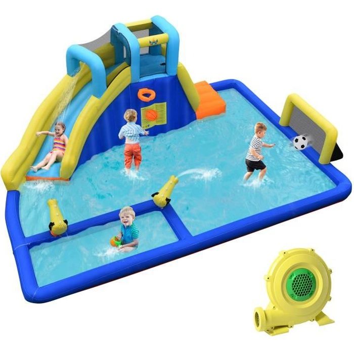 【4 en 1 Aire de Jeux】Le château gonflable comprend un toboggan lisse, une grande zone de saut et un panier de basket pour renforcer le divertissement sportif. Conçu pour les enfants de 3 à 10 ans, ce produit offre une aire de jeux complète, alliant trampoline, toboggan, et piscine à balles, tout en garantissant une sécurité renforcée grâce à son mur en maille ventilée Ce château gonflable à thème de princesse pour enfants inclut un toboggan, une zone de saut spacieuse, un panier de basket et une piscine à balles, parfait pour organiser une fête joyeuse. Le mur de protection en filet assure la sécurité des enfants pendant qu'ils sautent. Il est également facile à dégonfler et peut être rangé dans le sac de transport fourni, facilitant ainsi le transport et le stockage. 【Gonflage Facile & Rapide】Équipé d'un souffleur de 480W, le château gonflable se gonfle en quelques minutes, offrant un processus d'installation rapide et simple. Le mur de protection en filet ajoute une sécurité supplémentaire. COSTWAY Château Gonflable Océan 6 en 1 avec Toboggan Aquatique & 2 Adapté pour une utilisation à l'intérieur comme à l'extérieur, ce château gonflable est parfait pour toute occasion. Conçu avec un tissu oxford sélectionné et renforcé avec des coutures doubles, ce château gonflable assure durabilité et résistance aux déchirures. 【Château Princesse Attrayant】Avec son thème magique de princesse, ce château gonflable fera rêver tous les enfants, en faisant une addition merveilleuse à toute fête ou rendez-vous de jeu. Description: La maison gonflable offrira à votre petit un enfance inoubliable. Avec une glissade lisse, une grande zone de saut, un panier de basket-ball stimulant et un bassin rond de balles, le château gonflable éveille l'intérêt sportif des enfants et favorise leur croissance COSTWAY Château Gonflable Sur Thème De L'hiver Avec Toboggan Souffleur 735w Maison De Saut Gonflable Avec Panier Lancer Danneaux Interieur Exterieur Charge 135kg Pour 3 Enfants De 3 10 Ans 80618826 Caractéristiques : Château gonflable à thème de princesse pour enfants pour des heures de divertissement Large toboggan, zone de saut, panier de basket et piscine à balles pour un plaisir optimal Tissu oxford de haute qualité, résistant à l'eau et à la décoloration Coutures doublées résistantes à l'abrasion et aux déchirures Mur en maille ventilé pour une sécurité accrue Porte d'accès facile pour entrer dans la zone de saut Équipé de piquets de fixation pour une stabilité accrue Un kit de réparation est prêt en cas de dommages imprévus Maison peut être rangée dans le sac de transport après dégonfler Spécifications : Couleur : Multicolore Matériau : Tissu Oxford , PVC Dimenson totale : 363 x 202 x 205 cm (L x l x H) Dimension de la zone de saut : 150 x 145 cm (L x l) Dimension du toboggan : 106 x 50 cm (L x l) Hauteur du toboggan au sol : 68 cm Dimension de la porte d'accès : 56 x 63 cm (L x l) Âge recommandé : 3-12 ans Limite de poids individuelle : 45 kg Limite de poids pour la partie gonflable : 90 kg Souffleur : 480W Poids net : 16 kg Livraisons : 1 x Château Gonflable 1 x Sac de Transport (Couleur aléatoire) 6 x Piquets de sol 1 x Kit de Réparation 4 x Piquets de Souffleur 1 x Souffleur 480W 1 x Guide de l'Utilisateur Avertissement De Sûreté Non