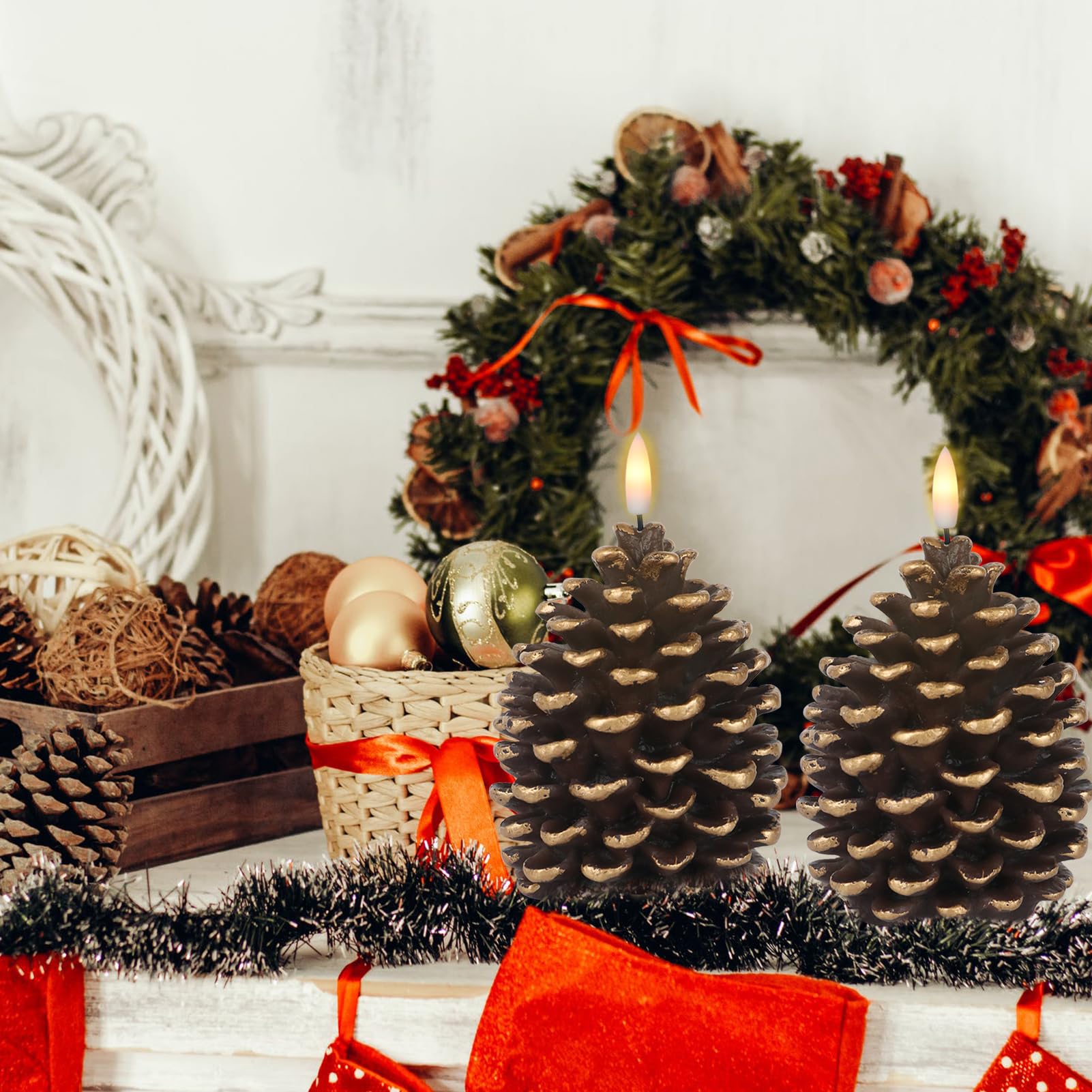 Les tailles réelles peuvent donc varier de 1 à 2 cm. Chers clients, les tailles de tous les produits de notre boutique sont mesurées manuellement. Merci de votre compréhension. Sécuritaire et sans flamme – parfait pour les familles: Grâce à la technologie sans flamme et alimentée par batterie, ces bougies offrent une alternative sûre aux vraies bougies. Optique réaliste pour l'élégance naturelle: Ces bougies à LED alimentées par batterie sont détaillées dans le design et ressemblent à de vrais bourgeons de sapin. Realistic optics for natural elegance: These battery powered LED candles are detailed in design and look like real fir buds. SAFE AND FLAMELESS - PERFECT FOR FAMILIES Ambiance Chaleureuse Sécurité Lasumora LED Flameless Pinecone Candles With 6H Timer, Battery Operated Waxy Pillar Candles, 2 Pack Christmas Candles Flickering Acorn Decor Woodsy Home Décor Christmas Gifts(Brown, 3.5 X 4.7 Inch Bougies Pomme De Pin Scintillement Vela Led de bellota de cono de pino marrón de cera Real parpadeante con temporiz