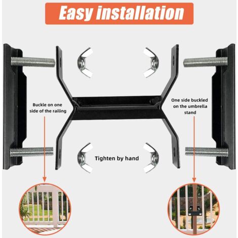Parasol Balcon Noir Porte-Parasol Balustrade De Balcon Support Pince Support Pour Table Parasol Accessoires Fixation Pour Balcon Terrasse Ou Table Balcon Parasols Avec Mat Jusqua 19 38 Mm 82755480 Support Parasol Balcon Le support de parasol de balcon permet d'économiser de l'espace sur les terrasses, les jardins et autres espaces extérieurs. Convient pour les mâts de parasol de 3,3 à 5,1 cm : nos supports de parasol de terrasse sont conçus pour être universellement compatibles avec les parapluies d'extérieur Polyvalent : à l'aide du support de parasol, balustrade de balcon, vous pouvez facilement fixer le parasol, le parasol de jardin, le mât de drapeau et plus encore sur le balcon ou la table Que ce soit sur un banc, une clôture, une balustrade, un bateau ou un mât, la position du support de parasol de balcon peut être modifiée selon les besoins. Nombreuses utilisations : avec le support de parasol de balcon, vous pouvez facilement fixer des parasols, des parasols de jardin, des mâts de drapeau et bien plus encore sur le balcon ou la table. Anyingkai Pince De Fixation Parasol,Support Fixation Parasol Balcon,Support Parasol Balustrade Peu encombrant : le support de parasol de balcon évite les supports de parasol lourds et encombrants sur les terrasses ou les balcons. Lot de 2 supports de parasol pour balustrade de balcon, balustrade de balcon, support de parasol, support de parasol, support de parasol pour terrasse, plage Caractéristiques : Le support de parasol de balcon est réglable en hauteur et en diamètre, de sorte qu'il peut être facilement déplacé dans différentes positions. Le support de parasol de balcon est idéal pour une utilisation sur différentes surfaces dans n'importe quel coin, comme par exemple sur les ponts, les socles, à l'arrière d'un bateau, sur les balustrades, etc. Le support de parasol de balcon résiste aux rayons du soleil et aux conditions météorologiques défavorables. Caractéristiques : Matériau : métal. Le support de parasol de balcon est adapté aux barres de parasol d'un diamètre de 25 à 38 mm. Aucun outil n'est nécessaire et le support de parasol de balcon peut être ajusté à l'aide de vis et facilement retiré. Cela vous permet de placer le support de parasol de balcon n'importe où vous souhaitez placer votre parapluie.