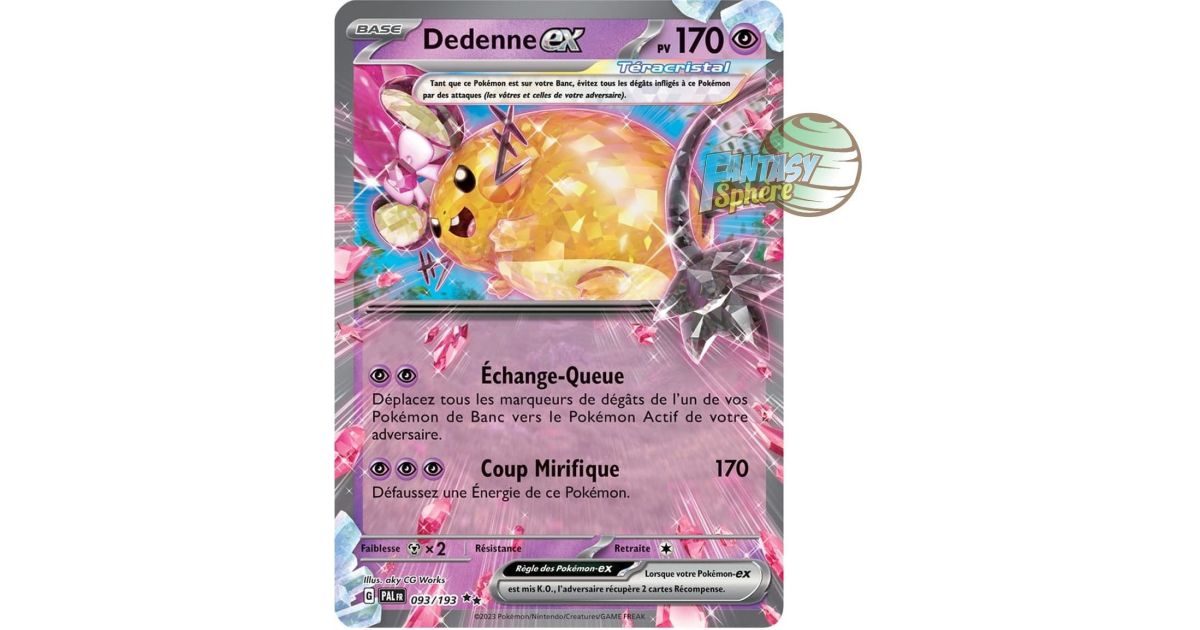 CARTE POKÉMON - Dedenne Ex Full Art Secrète 239/193 - EV02 FR Évolution Découvrez la carte Dedenne EX : rareté, éditions, visuels et prix actuels sur Cardmarket. Parfait pour enrichir votre collection Pokémon Card Game Les coffrets Ultraboost & Myboost contiennent 10 cartes Pokémon neuves et originales , Les engagements my-booster : PAL - 005/193 - Foretress Téracristal EX Cartes Pokémon Dedenne EX - Double Rare 93/193 - Ecarlate Et Violet Evolution à Carte Dedenne Ex Téracristal Aucune carte dresseur / energy - Aucune carte en double