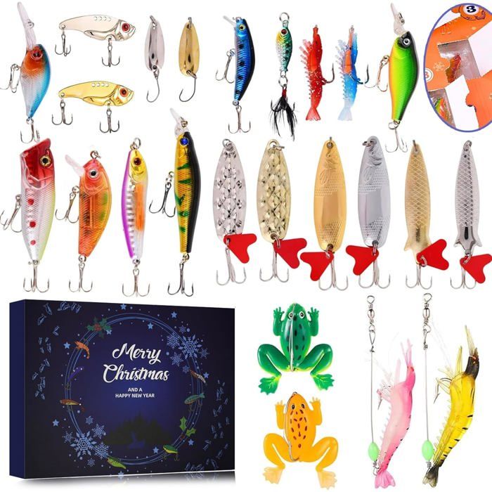 Notre gamme de calendriers de l’avent pêche a été pensée pour tous les passionnés de pêche aux leurres, du pêcheur débutant au confirmé. Chaque calendrier cache une sélection d’accessoires et de leurres de qualité, soigneusement choisis pour surprendre jour après jour jusqu’à Noël Spécification:Nom du produit: Calendrier du compte de leurre de pêche de NoëlTaille du produit: environ 29., 8x24., 5x3., 1cm / 11,73x9., 65x1,22 poucesPoids: 340gListe des produits:1 boîte * Calendrier du compte à rebours de la pêche de Noël (comprend 24 leurres)Note:En raison de différents paramètres d'éclairage et d'écran, la couleur de l'élément peut être légèrement différente de l'image. 24 Leurres Cadeau Pêcheur Noël Eau Douce Mer Calendrier De L'Avent F1 - HONO - Noël 2025 - 24 Jours - Ornements Cadeau Pêche Pour Homme Père Célébrez la magie des fêtes avec notre Calendrier de l'Avent de Noël, minutieusement conçu pour 24 jours d'attente . Usage Multifonction: Améliore le plaisir de pêche en visant la truite, le bar et le maquereau avec une adaptation parfaite conditions de pêche en mer et en rivière, et une couverture verticale étendue pour variété de poissons Performance Optimisée: Maximisez vos prises avec un leurre élaboré pour l'activation de frappe prédatrice, doté d'une action hydrodynamique, d'une forme precisionnée et de détails minutieux comme des yeux réalistes en 3D Chaque calendrier cache une sélection d'accessoires et de leurres de qualité, soigneusement choisis pour surprendre jour après jour jusqu'à Noël. Offrir ou s'offrir un calendrier de l'avent pêche, c'est profiter d'une idée cadeau originale qui allie passion et plaisir d'attendre les fêtes Calendrier De L'Avent Pour Hommes 2024 - Calendrier De L'Avent De Pêche Un cadeau significatif pour les pères, maris ou petits amis, il fonctionne de manière fiable tant en milieu salé qu'en eau douce. Cadeau Précieux: Le calendrier de l'avent de pêche inclut des cadequotidiens attentionnés qui enrichissent progressivement les collections de matériel, servant également comme option de cadeau cher pour multiples occasions festives, particulièrement adapté pour les célébrations de Noël Avec ses détails réalistes et sa fabrication précise, il améliore l'ambiance festive de votre maison.