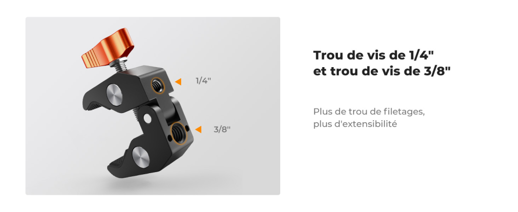 [ Adsorption Puissante, Sûr et Stable ] : Conçu en métal, robuste, matériaux de bonne qualité, le support est avec une ventouse de 6(152mm)en caoutchouc avec une grande surface de contact. Rotation libre à 360° adaptateurs inclus]Les deux rotules du bras magique offrent une rotation fluide à 360° pour un réglage précis de l'angle. Livré avec un clip smartphone et un adaptateur pour caméra d'action (GoPro, DJI, Insta360), il s'adapte à tous vos appareils Une fois bien fixé et tous les accessoires bien vissés et serrés, rien ne bouge. Le pin de verrouillage et le vis de 1/4”sur le dessus de petit bras aident à installer un cilp de téléphone, une lampe, un caméra d’action, un caméra panoramique. Compatible avec la plupart des caméra sportives et des smartphones portables, par exemple, compatible avec Hero 7/8/9/10/11/12/13 Black, Gopro max, DJI Osmo , Action 2/3/4/5 Pro, Insta360 X2/3/4, iPhone 16/15 Pro Plus Max, Samsung Galaxy, Google Pixel, etc. Osmo Action 6 K&F Concept Support à Ventouse De 3 Po Avec 360 ° Bras Magique à Double Support Ventouse Caméra [ Montage Aisé et Libération rapide ] : Appuyez simplement pour une prise en main rapide et puissante sur les surfaces, aidée par les lignes d'indicateur, et relâchez rapidement avec une simple traction vers le haut de deux poignées en caoutchouc sur la ventouse. De plus, un trou sur la ventouse est pour attacher la corde de sécurité lors de le tournage. [ Contenu ] : un support à ventouse de 6 ; un bras magique à 2 rotules ; un adaptateur Go Pro ; un vis de 1/4 ; un vis de 3/8”; un clé Allen ; une housse pour ventouse, une pince de téléphone, 2 petit bague en caoutchouc . Remarque : Assurez-vous que la ligne d’alerte de sécurité blanche reste à l'intérieur de la pompe à air lors de la fixation de la ventouse pour une force d'aspiration suffisante. Support ventouse pour collecteurs Biocompact 1,8 et 3L - Support pour [ Divers Options de Montage ] : Trou de filetage de 1/4”et 3/8” permettent de fixer un bras magique, un bras de perche, ou un pince clamp super. Adsorption Puissante, Sûr et Stable ] : Conçu en métal, robuste, matériaux de bonne qualité, le support est avec une ventouse de 6(152mm)en caoutchouc...