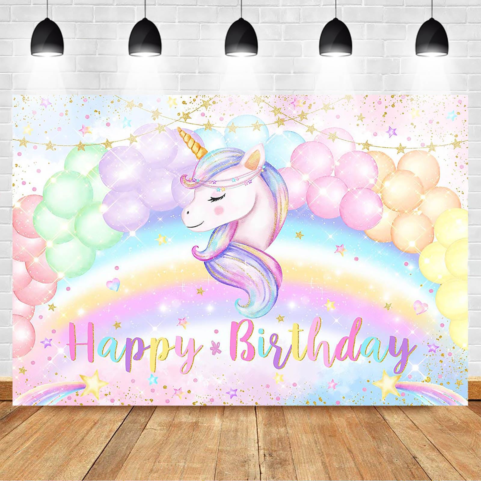 Bannière Joyeux Anniversaire Thème Licorne Colorée avec Arc-en Masque Anniversaire Licorne FINGERINSPIRE Arc-en-Ciel Licorne Joyeux Anniversaire Toile De Fond 185x100cm Bannière à Suspendre Décoration De Fête Dessin Animé Nuages Étoiles Fond Pour Séance Photo Décor Anniversaire Célébration Thème Anniversaire Licorne Anniversaire Licorne Arc-en-ciel, paillettes, couleurs pastel et soupçon de magie ! Si votre enfant a toujours rêver de chevaucher une licorne et d'explorer ses pouvoirs magiques, offrez-lui une fête d'anniversaire qui lui laissera un merveilleux souvenir De notre décoration de porte en arche aux ballons en aluminium transparents, préparez votre espace pour la fête avec nos décorations d'anniversaire de licornes
