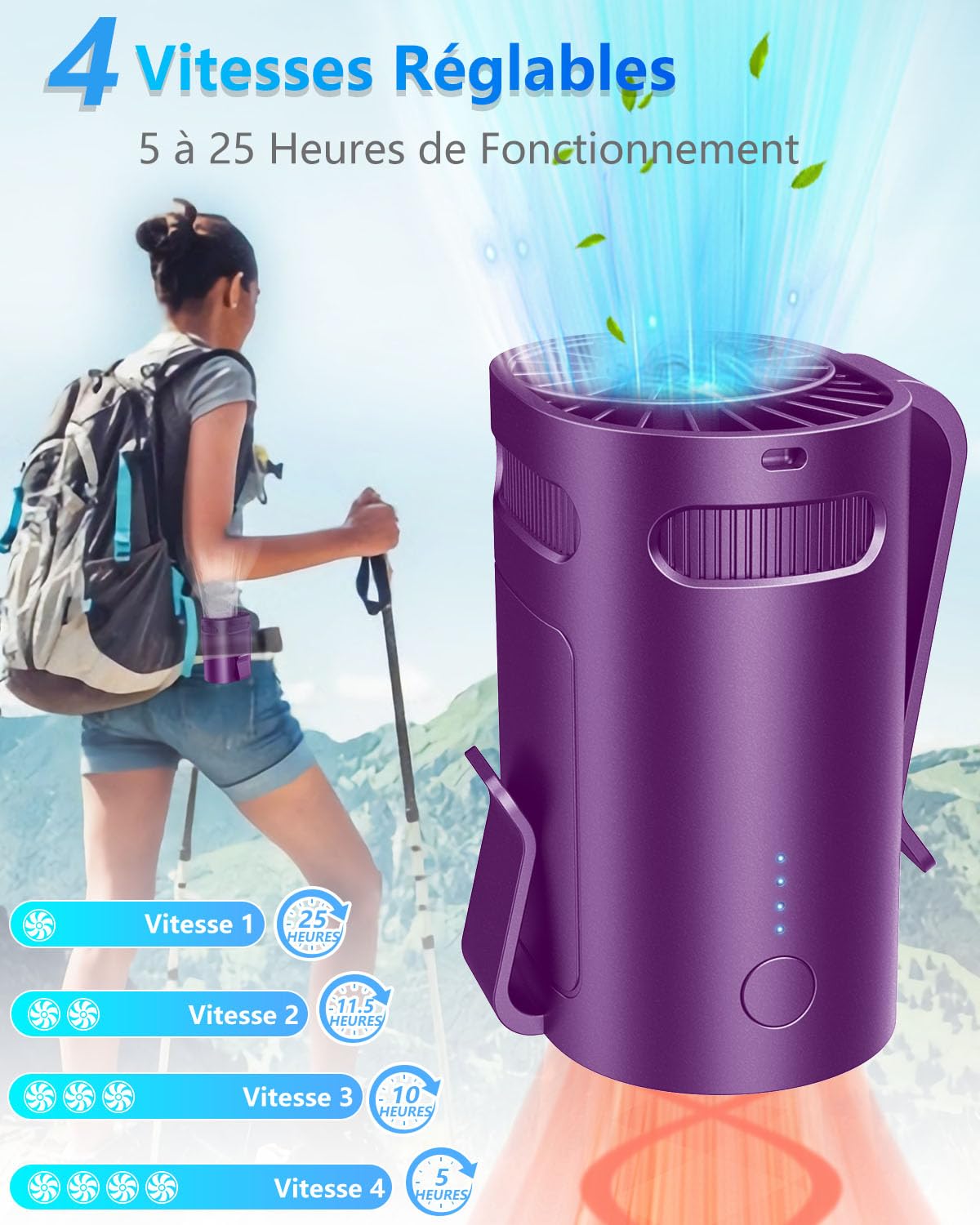 Spécification: Nom du produit: clip de taille sur le ventilateur Mode de travail: 100 vitesses (ajustées en 5 niveaux) Capacité de la batterie: 4000mAh Matériaux principaux: Abs / aluminium / silicone / Fe Tension d'entrée: 5V Power de taux: 10W Temps de charge: environ 3 heures La durée de vie de la batterie: 2-6 heures Taille du produit: environ 10., 2x9., 3x6., 3 cm / 4,02x3., 66x2,48 pouces Vitesse de rotation: 15 000 r / min Vitesse du vent: 12,5 m / s Poids: 260 grammes Liste de colisage: 1 x clip de taille sur le ventilateur Note: En raison de différents paramètres d'éclairage et d'écran, les couleurs de l'élément peuvent légèrement des . Compagnon outdoor Idéal pour le sport, l'exercice, les travaux manuels et le camping, ce ventilateur portable maintient une excellente aération. Découvrez un ventilateur portable à clipser sur la ceinture, conçu pour améliorer vos activités en plein air. Compatible sources multiples (USB/PC/chargeur) et fonctionne comme power bank. Matériaux principaux: Abs / aluminium / silicone / Fe Mini Ventilateur à Pince Personnel Portable USB Avec Batterie Rechargeable Petits Ventilateurs De Bu 550 Positionnement adaptable :Comprend un socle pour bureau, fixation à la ceinture ou au pantalon, compatibilité avec bandeau cervical et suspension par cordon. Portabilité et Charge : Pèse seulement 260g avec design compact. Ce petit ventilateur mains libres dispose d'un design léger de seulement 182 g, offrant une option de port telle que le clip de taille, le cou ou une... Ventilateur De Ceinture Ventilateur à Pince De Taille Portable Ventilateur Alimenté Ventilateur Clip Taille 4000mAh Ce dispositif à flux d'air puissant est idéal pour le camping, la randonnée, le trekking, l'escalade ou simplement la marche. Doté d'un système de fixation avancé, il reste parfaitement stable en toute position, même lors de déplacements intensifs en extérieur. 4000MAH BATTERIE 5 VITESSES: Notre ventilateur de ceinture a batterie intégrée de 4000mAh, plus de soucis de batterie, et se recharge facilement via un port USB Capacité de la batterie: 4000mAh Positionnement fiable: Spécialement conçu pour les activités en plein air, ce ventilateur ceinture offre une tenue parfaite pendant le sport ou l'exercice. Ventilateur de Ceinture Maîtrise du Flux d'Air Expérience de fraîcheur instantanée à 15 000 tr/min max et 12,5 m/s, technologie de moteur sans balais avancée avec cinq vitesses réglables pour un confort personnalisable. Toujours prêt à l'emploi ou à recharger partout.