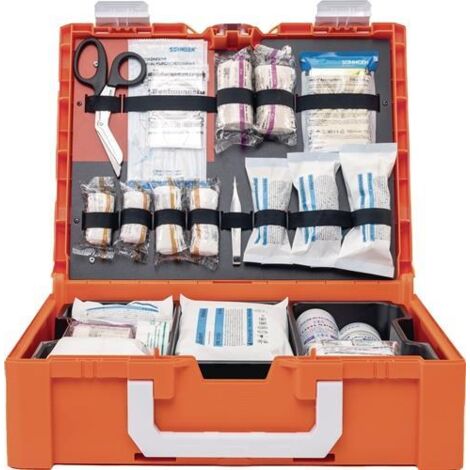 Plastique ABS, résistant aux chocs et incassable, avec joint en caoutchouc et bras mural Plaques de recouvrement transparentes pour protéger les pièces de remplissage, division intérieure variable grâce à des séparateurs sans blocage. Dimensions : 260 x 110 x 170 mm Mallette premiers secours EUROPA II l.400xH300xP150env.mm - qualité professionnelle - Champion Selon les réglementations des fabricants, les compositions minimales des kits de premiers secours doivent être respectées pour les véhicules, les entreprises, les écoles et autres environnements Cette malette médicale de secours QUICK-CD répond aux exigences de la norme DIN 13157. Comprend un support mural avec maintient à 90°. Détails sur le produit Trousse Urgence Voiture Entreprise LEINA Valise De Premiers Secours SAN, Contenu Selon DIN Trousse Secours Leinawerke 82100 Orange · Remplissage standard DIN 13157 · l 26 x H 17 x P 11 cm · ABS antichocs avec joint en caoutchouc · Support mural compris