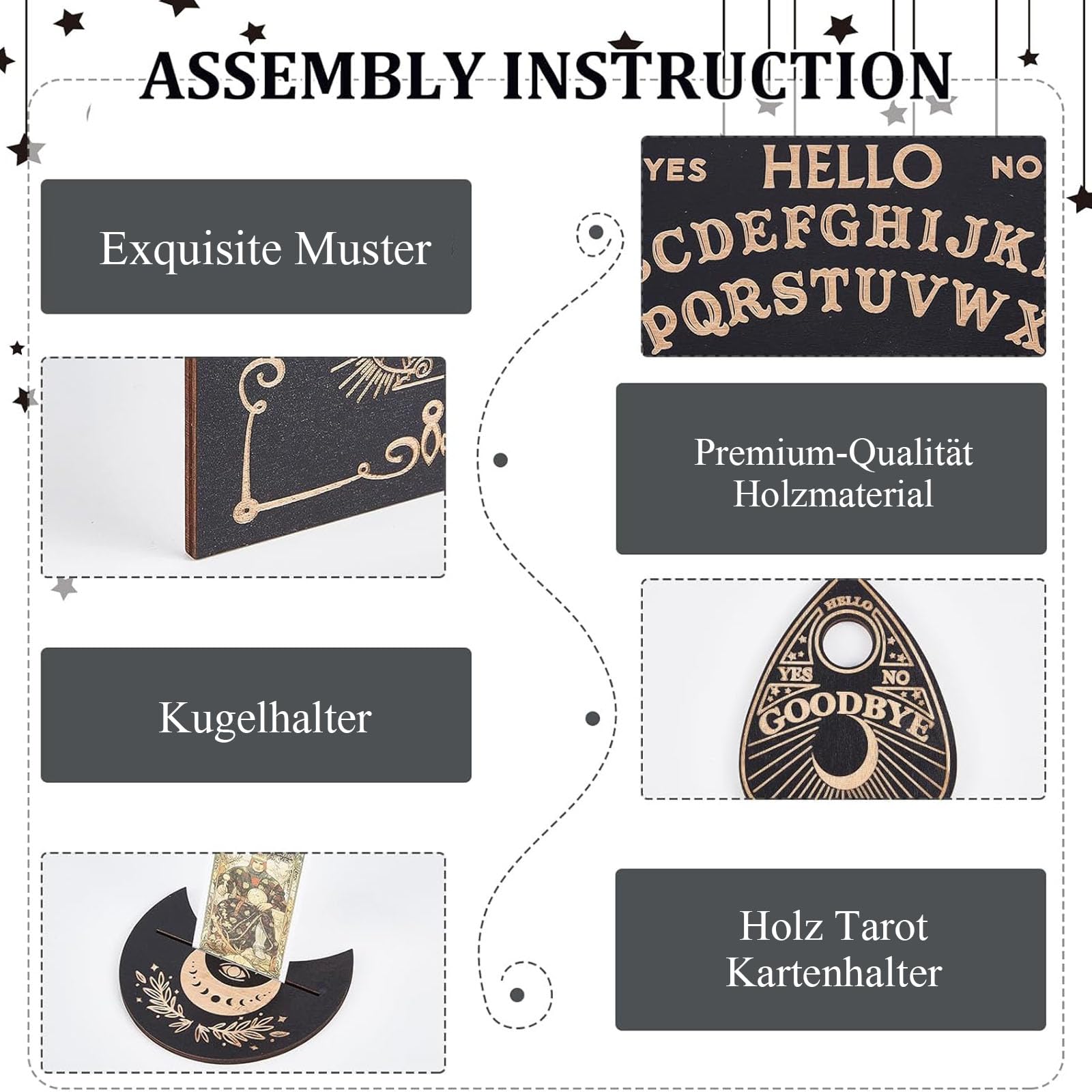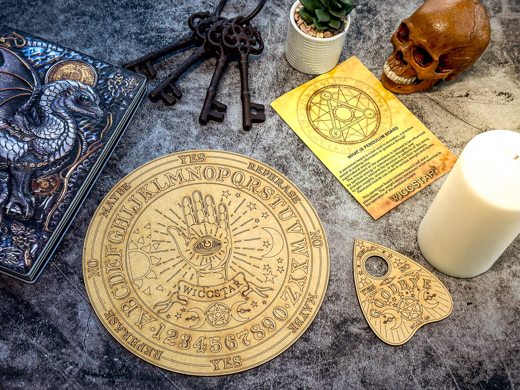 Fabriqué à partir de bois durable avec des détails complexes, il dispose d'un tiroir de rangement intégré pour garder la planchette et les petits accessoires. Ensemble de Support de Planche Ouija et de Carte de Tarot en Bois, Planches de Divination de radiesthésie, Planches de Conversation avec Planchette pour Fournitures de Sorcellerie Parfait pour les configurations de sorcellerie, les décorations d'Halloween ou les présentoirs de table, cette planche minuscule mais puissante ajoute un charme effrayant à n'importe quel espace. Outil de divination classique en bois : fabriqué à partir de bois durable avec des lettres et des chiffres gravés, cette planche Ouija est une expérience traditionnelle et mystique pour ceux qui recherchent la communication spirituelle ou l'exploration paranormale Idéal pour la sorcellerie et les installations rituelles : complète les autels ou les espaces spirituels avec son design symbolique, ce qui en fait un outil polyvalent pour les rituels, les pratiques méditatives ou le plaisir motivé par la curiosité dans le monde de l'inconnu Planche De Ouija , Outil De Divination En Bois, Jeu D' Mystique Avec Planche Ouija Miniature Idéal pour les fournitures de fête, les collections occultes ou les jeux paranormaux, cette planche apporte une excitation étrange aux rassemblements et aux rituels personnels. Tiroir de rangement intégré pour accessoires : dispose d'un tiroir caché pour ranger soigneusement la planchette et les petits bibelots, gardant tout organisé et améliorant le charme de la planche en tant que jeu et pièce de collection Taille compacte pour une décoration et une présentation minuscules : petite mais détaillée, elle sert de décoration de table unique qui se marie bien avec les intérieurs gothiques, vintage ou mystiques tout en servant de sujet de conversation fonctionnel et accrocheur Remarque : En raison des différents paramètres d'éclairage et d'écran, la couleur de l'article peut être légèrement différente de celle de la photo. Ouija, planche ouija, ouija board, spiritisme, spiritualité, planche de En raison des différentes mesures manuelles, veuillez prévoir une différence de 1 à 2 cm. Planche Ouija En Français En Bois