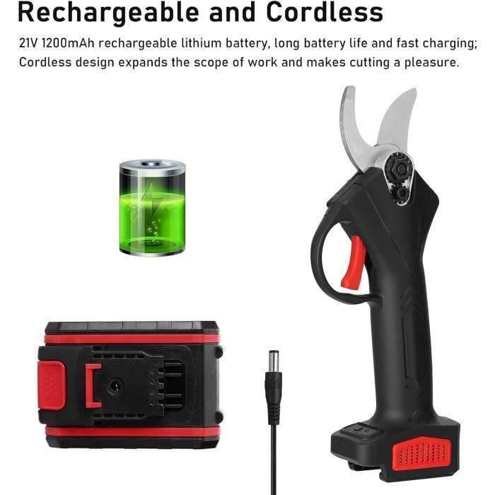 En cas d'urgence, relâchez le déclencheur pour arrêter immédiatement le processus. Vous pouvez facilement modifier la taille de l'ouverture en appuyant simplement sur la gâchette deux fois de suite. Astuce : couper des branches à un certain angle peut faciliter la coupe des branches. Il peut être utilisé dans différents jardins, parcs, fermes, ranches et vergers. Cette fonction pratique permet un suivi et une gestion faciles pour vous aider à planifier vos tâches de coupe plus efficacement. TONYSA Sécateur Électrique Sans fil, secateur electrique diamètre de À pleine charge, deux batteries peuvent être utilisées pendant 4 à 6 heures. En même temps, cette tondeuse électrique est compatible avec les batteries lithium-ion Makita BL-18 V. EN STOCK : SéCateur éLectrique Professionnel,SéCateur d'arbre De Jardin Alimenté par Batterie 21V avec Moteur sans Balais, DiamèTre De Coupe RéGlable,Adapté à L'éLagage du Jardin, RTN FR MJ K0085 20250423 01 pas cher. Livraison rapide partout en France Coupe Branche Electrique Élagueur Compatible Avec Makita 18 V (sans Batterie), Avec 8,5 Ft Tige D'extension, Diamètre De Coupe Maximum 30 Mm, écran LCD, Coupures électriques Rechargeables (avec Tige D'extension Secateur Makita Sécurité et ergonomie : si le sécateur n'est pas utilisé pendant une longue période, il passe automatiquement à l'état de verrouillage et le sécateur ne peut être démarré qu'en tirant deux fois sur la gâchette. (Il peut couper 40 mm en une seule passe, 50 mm en deux passages et 60 mm en 3-4 passes) Le sécateur électrique sans fil BAIDELE 21 V 2.0Ah est un outil de jardinage moderne qui répond aux besoins des jardiniers professionnels et amateurs Écran LCD, léger et professionnel : ce sécateur électrique est équipé d'un écran LCD qui vous permet de vérifier le nombre de coupes et la puissance restante. Forte compatibilité : ce kit de sécateur électrique est livré avec 2 batteries au lithium de 2,0 Ah et un chargeur rapide. Sécateur électrique puissant : nos sécateurs électriques sans fil sont équipés d'un puissant moteur sans balais de 1000 W qui peut facilement couper de grandes branches et rend l'élagage aussi facile que de couper du beurre. Avec ce produit, vous pouvez tailler des branches, des arbustes, des greffes, etc.
