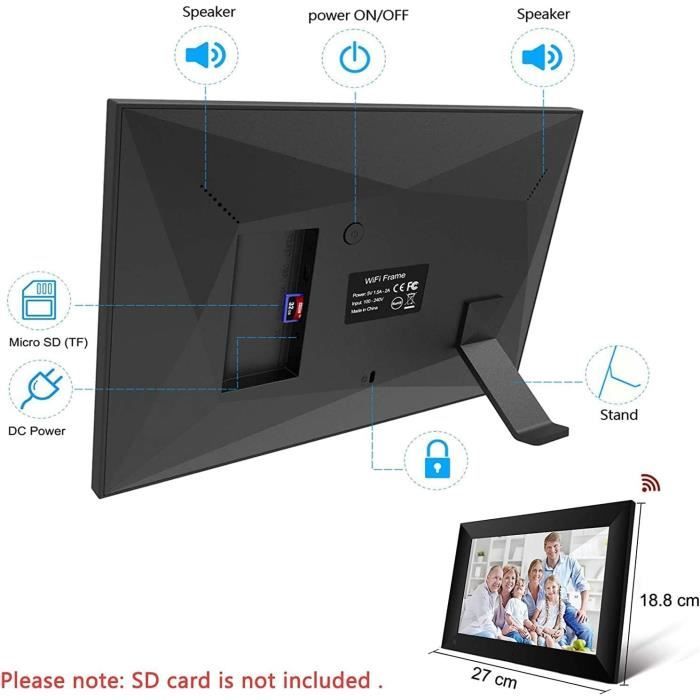 【Multi-fonctionnel】Notre dernier cadre photo numerique prend en charge les fonctions photo, musique, vidéo, alarme, calendrier, météo, etc. Ce cadre numérique intelligent est doté d'une fonction intelligente d'auto-rotation qui permet d'afficher parfaitement les photos lorsqu'elles sont placées à l'horizontale ou à la verticale. 32 Go de Mémoire Interne + 64 Go de Mémoire Extensible Installez-le sur une table ou fixez-le au mur, il s'adapte à tous les intérieurs.Un cadre moderne, intuitif et connecté, conçu pour rapprocher les familles et partager les moments qui comptent Vous pouvez également inviter un nombre illimité d'amis ou de membres de votre famille à partager un grand moment ensemble. Rotation Automatique: Le Capteur de Gravité Intégré Fait Automatiquement Pivoter les Photos Mode de lecture : lecture aléatoire, lecture ordonnée Cadre Photo Numérique Connecté avec écran IPS 10.1 pouces, résolution 1280x800 pour des images claires et nettes. Profitez de la connectivité WiFi, Bluetooth et RJ45 pour un partage facile de vos souvenirs Taille de l'écran : 10 pouces, Mémoire DDR : 1 Go Alignement : format vertical ou horizontal Il répond parfaitement à tous vos besoins. Il est également doté d'un écran tactile capacitif à 10 points qui vous permet d'ajuster facilement l'ordre de lecture, le zoom sur les images, de couper/supprimer des images, d'afficher des titres, de régler la luminosité, de passer en mode veille et de répondre à d'autres besoins. 【Installation Facile】Ce cadre numérique photo utilise l'APP gratuite (pour les appareils Android et iOS) pour se connecter au Wifi. Autres fonctions : musique de fond, réveil, calendrier, météo, réglage de la luminosité, mode veille Matériau du cadre : Plastique Cadre photo numérique connecté DF-900 noir | Cadres photos numériques Formats d'image : JPEG/JPG/BMP/PNG. Description du produit BWJBSW WiFi Cadre Photo Numérique 10,1 Pouces Caractéristiques techniques : Wi-Fi : Wi-Fi 2,4 GHz, Écran tactile : Oui En quelques minutes, vous pouvez ajouter des photos ou des vidéos, ajouter des légendes aux photos et enregistrer vos expériences n'importe où et n'importe quand. Confidentialité et Sécurité Absolues Cadre Photo Intelligent 32Go Mémoire Cadre Photo Numérique Connecté - Wi-Fi, Écran Tactile & Android Cadre Connecté Partage Photo Famille Prend en Charge Plusieurs Options de Connexion pour Ce Cadre Photo Numérique Vous pouvez choisir la méthode la plus simple pour télécharger vos photos. Mémoire : 32 Go de mémoire interne, prend en charge les cartes SD jusqu'à 64 Go 【32GB Stockage Gratuit】Grâce à la mémoire intégrée de 32 Go, vous pouvez stocker gratuitement environ 80 000 photos de 300 Ko/pièce, ce qui vous permet de garder vos précieux souvenirs à portée de main.