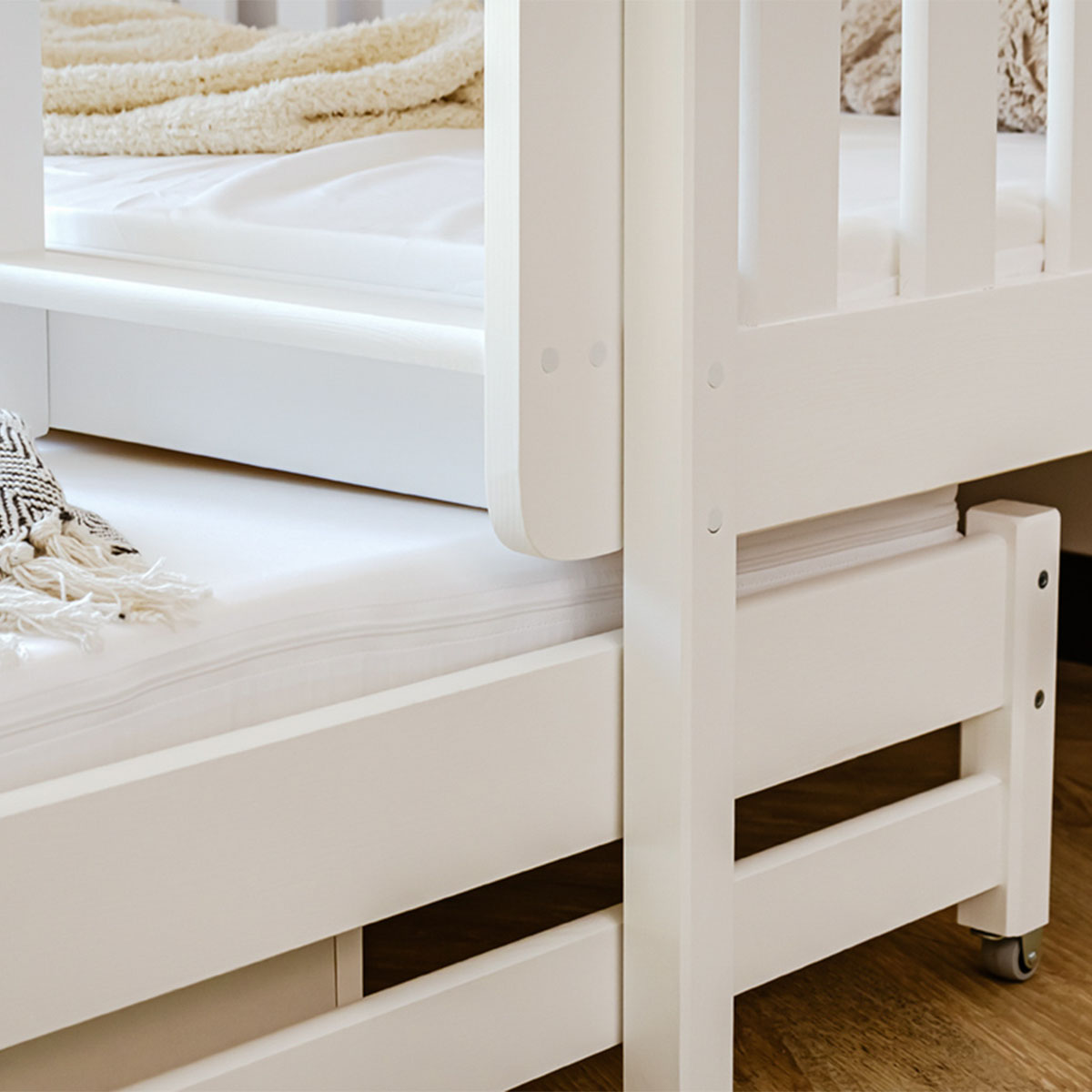 Testé par des parents pour des parents. ✅ SAFETY FIRST : Lit certifié selon les normes les plus strictes, fabriqué en pin massif FSC avec des peintures à base d'eau, adaptées aux enfants, inodores, résistantes aux fuites et à la salive. ✅ PROTECTION CONTRE LA CHUTE EN HAUT : La protection contre la chute extra-longue permet à votre enfant de dormir en toute sécurité en haut. Lit Superposé 90X200 cm, Lit Cabane avec Tiroirs Et Protection Contre Ainsi, même après la transformation, le sol peut être vu. Testé par des parents pour des parents. PROTECTION CONTRE LA CHUTE EN HAUT : La protection contre la chute extra-longue permet à votre enfant de dormir en toute sécurité en haut. CONSTRUCTIBLE ET PROTECTEUR DU SOL : En option, le lit mezzanine peut être transformé en deux lits individuels 90x200 Lit Superposé Kids Collective Lit Mezzanine 90x200 Avec 2 Tiroirs Avec Protection Contre Les Chutes Et Sommier à Lattes, Transformable En Deux Lits Pour Enfants, En Bois Massif Blanc, Lit Fonctionnel Lit Description du produit TRANSFORMABLE ET PROT G DES SOLS en option, le lit mezzanine peut tre transform en deux lits individuels de 90x200. Les extr mit s des pieds sont munies de toupies en caoutchouc qui prot gent le sol. Ainsi, m me apr s la transformation, le sol peut tre vu. SAFETY FIRST lit certifi selon les normes les plus strictes, fabriqu en pin massif FSC avec des peintures base d'eau...