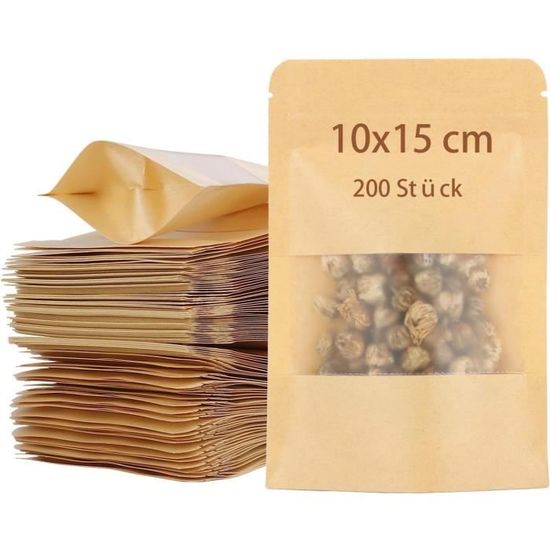 Les sachets sont parfaits pour une utilisation lors de mariages, fêtes d'anniversaire, de Noël ou tout simplement pour une utilisation quotidienne dans la cuisine. Particularité : revêtement intérieur résistant à la graisse. Ils sont assez robustes pour transporter les aliments en toute sécurité et peuvent tenir debout, ce qui les rend particulièrement pratiques. Design de sac de rangement facile à mettre en place. Robuste et résistant aux déchirures : Fabriqués en papier kraft épais, ces sacs à pain en papier offrent une solution durable et stable pour le rangement. Sachet Kraft Alimentaire avec Fenetre | Emballage avec Fenêtre Veuillez noter que la taille est petite, veuillez vérifier la taille avant de commander. Design du produit : les sacs à fond plat ont une fermeture à glissière réutilisable, pratique à ouvrir et à fermer, une fenêtre transparente givrée, vous pouvez voir directement les aliments intérieurs. 50pcs Sachet Kraft Alimentaire Standable Sachet zip Kraft Avec Fenêtre... Sachet Alimentaire Kraft 50 Pièces Sachets Kraft Alimentaire, Zip, Emballage Reutilisable, Sac Papier Fenêtre, Résistant Humidité, Emballage Kraft Graines Noix (14x22CM Papier Alimentaire Idéal pour les pâtisseries huileuses ou grasses comme les biscuits, les noix ou les fruits secs. Avantages du produit : Fenêtre de visualisation élégante et pratique : Les sacs en papier avec fenêtre de visualisation permettent une vue claire du contenu, ce qui permet de présenter de manière attrayante les pâtisseries, les biscuits ou les petits cadeaux. Sachet Kraft avec fenêtre | Naturals&co La fenêtre transparente donne à l'emballage un aspect haut de gamme, idéal pour une utilisation professionnelle dans les boulangeries. Poches pratiques pour l'emballage du produit. Dimensions : 9 x 14 cm/10 x 15 cm/14 x 20 cm/16 x 23 cm/18 x 26 cm/22 x 32 cm Couleur : marron avec fenêtre transparente. Réutilisable et thermoscellable : le sac en papier kraft peut être scellé par une machine à sceller à chaud, encoches sur le dessus qui permet à vos clients de l'ouvrir même sans outils.