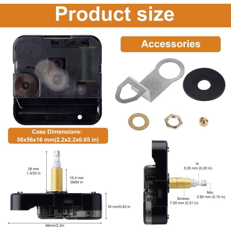 Fonction : si l'horloge de la maison est cassée, vous pouvez retirer le mouvement cassé et le remplacer par un nouveau. Conception générique : ce kit de mouvement d'horloge offre une forte compatibilité avec différents types d'horloge, offrant un ajustement parfait et une adaptation facile, ce qui en fait le choix parfait pour les horlogers Améliorez votre horloge avec notre mécanisme de remplacement d'horloge ! La consommation d'énergie est inférieure à 150 microampères Liste de colisage: 1 * aiguille des heures 1 * aiguille des minutes 1 * seconde main 1 * vis 1 * joint 1 * mouvement d'horloge Remarques: 1., En raison des différents effets de moniteur et de lumière, la couleur réelle de l'article peut être légèrement différente de la couleur montrée sur les images., 2., Veuillez pardonner un léger écart de mesure dû à la mesure manuelle. ✬Merveille d'usure réduite : notre mouvement d'horloge est doté d'une technologie de mouvement de balayage qui réduit les chocs mécaniques et l'usure des pièces internes, ce qui entraîne une durée de vie prolongée et une précision impeccable. Le mouvement fluide et précis garantit une heure précise sans bruit gênant, ce qui le rend parfait pour les environnements silencieux ou les chambres. Sa structure interne simple facilite l'installation. Kit de Mecanisme Horloge Murale, Mécanisme Horloge Silencieux Quartz axe 16 mm, 55x55x32mm avec Utilisations : Petit réveil, montre murale, etc. Doté d'un mouvement à balayage et d'oscillateurs à de précision, il peut fonctionner plus longtemps et résister à des chocs mécaniques réduits. Batterie : utilisez une batterie n 5 de 1,5 V Poids brut du produit : environ 21 g Taille du produit: environ 5,5x5,5x1,5 cm/2,17x2,17x0,59 pouces Longueur de la tige : environ 1,2 cm/0,47 pouces Fil : environ 0,6 cm/0,24 pouces Performance : balayage silencieux, bobine de cuivre , assurance qualité. Son design simple et élégant répond à tous vos besoins.Matériau et emballage : Le kit d'aiguilles et de moteur est fabriqué en plastique de première qualité, léger et résistant à la corrosion, facile à installer et offrant de nombreuses options.Applications variées : Pièces de rechange pour mouvement d'horloge murale à quartz... Mécanisme Remplacement Horloge MÉCANISME DE MOUVEMENT D'horloge De Quartz Pièces De Réparation De Mur De M7H EUR 2,49 - IT Aiguilles Horloge Tige Courte Donnez à votre horloge la précision qu'elle mérite avec notre mécanisme !