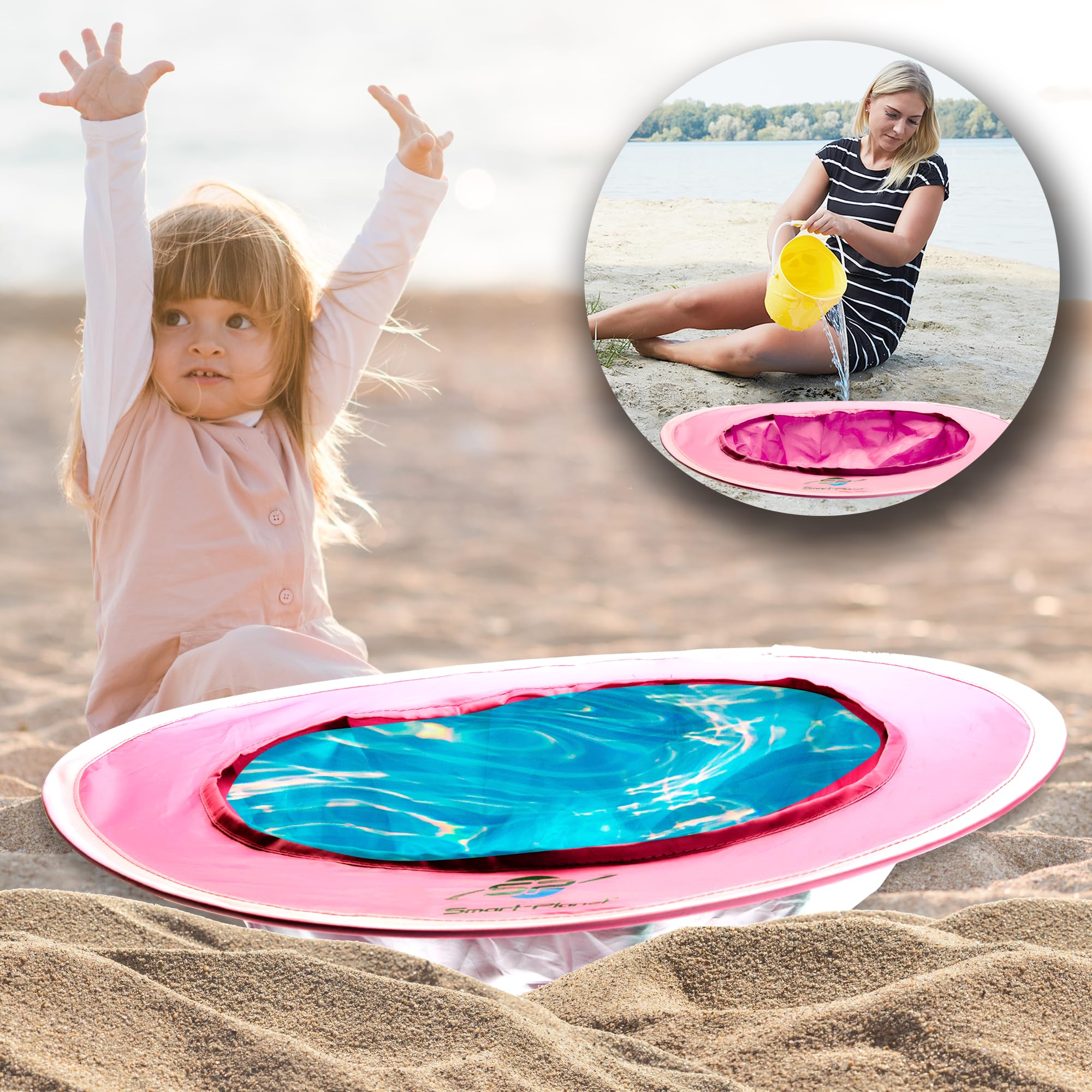 Il suffit de l'enfoncer dans le sable, de la remplir avec de l'eau – la mini pataugeoire pour bébé est prête Les parents gardent toujours un œil sur leur enfant et n'ont pas besoin de l'accompagner dans l'eau libre. Grâce à son poids léger de seulement 200 g et son sac de transport compact, il se glisse dans n'importe quel sac de plage ou dans une valise – idéal pour les vacances avec bébé ou tout-petit. La pataugeoire s'adapte sans problème sous un parasol sur la plage POP-UP : la piscine pour bébé est adaptée pour une utilisation dans le sable. Que ce soit pour des vacances en famille, une excursion d'une journée ou tout simplement pour la maison, cette piscine pliable pour bébé est un véritable must have pour les parents qui apprécient la sécurité, le confort et la flexibilité. Babymoov Aquani Marinière, 3 en 1 Aire de Jeux, Lit d'appoint et Piscine, Anti-UV FPS 50 , Moustiquaire et Auvent rabattable intégrés, Dès la naissance Smart-Planet Pataugeoire classique - Piscine gonflable à 2 anneaux - 60 x 15 cm - Piscine pour Idéal pour rafraîchir votre bébé lors des chaudes journées d'été - Surface extérieure : 50 x 50 cm - Assise : 35 cm de diamètre, 15 cm de profondeur - 4 piquets de 15 cm chacun à fixer dans le sable Notre service client est heureux de vous aider si vous avez des questions ou des problèmes avec le produit Manipulation : creuser un trou d'environ 35 x 15 cm (l x H), déplier et mettre la piscine. Maintien sûr dans le sable Les piquets fournis assurent un maintien ferme – la piscine peut être enterrée dans le sable et fixée de manière stable. Petit Piscine Bebe Smart-Planet Piscine Pop-up Bébé Plage - Bleu - 70 X 70 Cm, 20 X 50 Cm (H X L) - Pataugeoire à Emporter - Indéchirable - À Lancer Avec Sac Piscine Bébé Pop-up Pvc La piscine pour la plage est dotée du système pop-up, un concept de montage et de pliage facile, au caractère nomade. Elle se plie et se déplie en 2 temps, 3 mouvements Compact & mobile La piscine est livrée dans un sac de transport léger - Idéale pour la plage, le lac ou le parc. Que ce soit sur la plage, dans le jardin ou au lac de baignade, cette piscine pliable pour bébé peut être installée en un clin d'œil et assure un plaisir d'eau sûr sans grand effort. Facile à transporter et à ranger Description du produit Piscine pop-up pratique pour bébés et jeunes enfants Idéal pour la plage, le jardin ou les vacances La piscine pop-up est la solution parfaite pour les chaudes journées d'été avec les jeunes enfants. La piscine se place également parfaitement sous un parasol, permettant à votre bébé de barboter et de se rafraîchir à l'ombre. Smart-Planet: Nous sommes une entreprise familiale locale de Rhénanie et attachons une grande importance à la satisfaction du client.