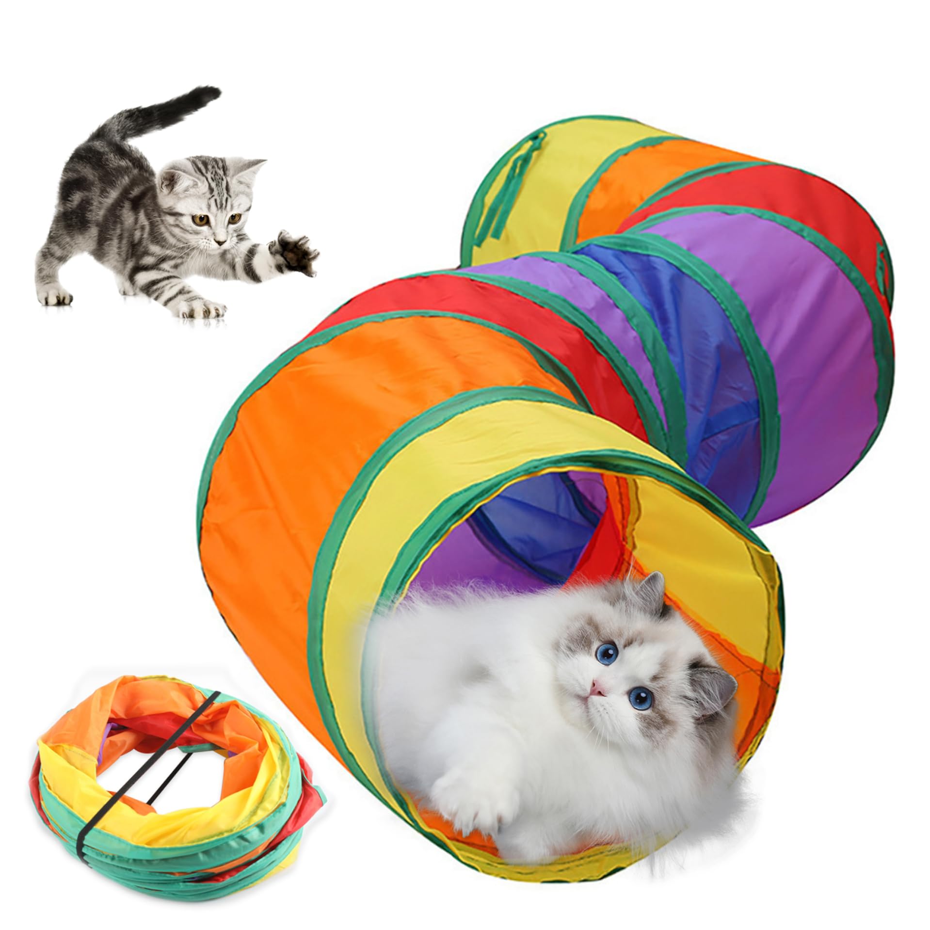 Tunnel coloré ludique : conçu avec une palette arc-en-ciel dégradée, ce tunnel pour chat attire l'attention des félins et enrichit l'ambiance de la maison grâce à son aspect dynamique et joyeux Liste : 1 tunnel pour chat. Tunnel Chat Tunnel Arc-en- Pour Chat - 123 X 25 X 25 Cm - Tunnel Pour Chat D Jouet Chat Interactif Pliable Intérieur Description du produit Une solution attrayante pour le jeu des animaux de compagnie, le tunnel pour chat dispose d'une structure tubulaire pliable et portable qui agit comme une aire de jeu polyvalente. Stimule l'activité physique : fournit des chemins attrayants qui inspirent les actions de saut et d'escalade ainsi que la curiosité naturelle grâce à des designs innovants conçus pour améliorer le jeu interactif et le bien-être général du chat Tunnel coloré ludique : conçu avec une palette arc-en-ciel dégradée, ce tunnel pour chat attire l'attention des félins et enrichit l'ambiance de la maison grâce à son aspect dynamique et joyeux Parfaits pour stimuler leur curiosité naturelle, nos tubes et tunnels interactifs sont conçus pour s'intégrer facilement à votre intérieur tout en répondant aux... Tunnels pour chat d'intérieur - Tube pliable de 25,4 cm de Dimensions du produit : 123 x 25 x 25 cm. Environnement de jeu spacieux : conçu pour une utilisation flexible, ce tunnel pour chat dispose d'un intérieur spacieux et s'adapte parfaitement à différents espaces améliorant le divertissement avec l'intégration de jouets modulaires Matériau du produit : polyester.