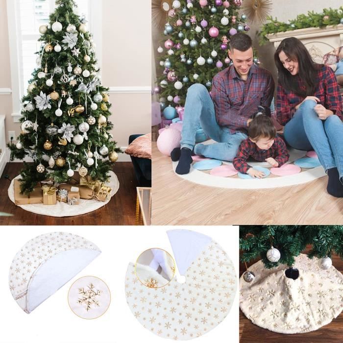 SAPIN DE NOEL Jupe Sapin de Noël 122cm Blanc Peluche Grand Tapis de Sapin Couvre Pied Sapin Noël avec Flocon de Neige Christmas Tree Skirt Fête Vacances Noël Décor (Or) JUPES D'ARBRE DE NOEL - Jupe en sapin de Noël en fausse fourrure, grande et élégante, grande taille: 122cm de diamètre La taille convient à la plupart des types d'arbres de Noël, couverture de sapin de Noël avec motif flocon de neige argenté, apporte plus d'ambiance de Noël à votre maison, pour la décoration de Noël, la décoration du Nouvel An. Tapis Pied Arbre Noël Blanc Jupe De Sapin De Noël, Couvre-pieds De Sapin, - Tricoté Avec Décoration Fêtes Hiver La grande taille et la texture douce rendent cette jupe d'arbre idéale pour placer des cadeaux autour de l'arbre et assurer une présentation belle et ordonnée pendant les vacances. Multi-usage : décoration pour le salon, la fête de Noël, la chambre, le jardin, le bar, l'hôtel ou n'importe où. C'est également un beau cadeau de Noël pour votre famille ou vos amis. Achat en ligne de Couvre-pied de sapin dans un vaste choix sur la boutique Cuisine et Maison Dbaiyi-Ddis Jupe de sapin de Noël de luxe avec chaussette Blanc 122cm Tissu 84506 - Maison Taille : notre tapis de sapin de Noël mesure 122 cm de diamètre. Matériau : la couverture de sapin de Noël est fabriquée en polyester durable, qui ne se casse pas facilement et est très durable ; en outre, elle est douce et confortable, ne se décolore pas et ne se déforme pas. 437g Quantité: 1 morceau de couverture d'arbre de Noël blanc