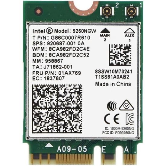 Carte Wifi Pour Pc ASHATA Carte Réseau Sans Fil, Carte Réseau Bi-Bande 2.4G/5G Bluetooth 5.0 Carte WiFi Sans Fil Pour 9560AC NGW,Compatible Avec/Dell//Acer/ISUS/MSI/ Terransforce/Hasee,etc Carte Wifi 7 Modèle : pour 9560NGW., SPS: 937263 - 001 0 b, FRU P/N : 01 ax768., Interface : bouton NGFF E, 22 x 30 mm. Il peut être utilisé sur / Dell / / Acer / ISUS / MSI / Clevo / Terransforce / Hasee etc. Interface de connexion : M., 2 : CNVio 【Compatibilité Large】: Cette carte réseau est compatible avec une variété de marques d'ordinateurs portables, notamment Dell, Acer, Asus, MSI, Clevo, Terransforce, Hasee, etc. 【Expérience de Connexion Améliorée】: Combiné avec des processeurs Core et des innovations sans fil exceptionnelles, l' Wireless-AC 9560 peut fournir une vitesse sans fil Gigabit 4., Que vous soyez à la maison, au travail ou en déplacement, cette carte réseau est conçue pour améliorer considérablement votre expérience de connexion Elle prend en charge les téléchargements rapides et assure une longue durée de vie de la batterie, optimisant ainsi l'efficacité et la commodité de votre utilisation. Pour MSI Z390 Tomahawk., Pour ASRock Deskmini 310., Pour ASRock J4105-itx, J5005-itx, B360m pro4., Pour Hasee K680E en 2018, T96e, Y7000 Y7000P., Pour ThinkpadX1, Pour Thinkpad p52 Que vous souhaitiez connecter une souris, un clavier, des écouteurs ou d'autres appareils, cette carte peut répondre à vos besoins. TMISHION Carte réseau Bluetooth Carte réseau sans fil Adaptateur Cependant, veuillez noter que les ordinateurs portables IBM, Thinkpad et HP ne sont pas pris en charge. Pour upgrade la connectivité de ton PC portable, cette carte WiFi Intel 9560NGW est une valeur sûre ! Elle supporte le WiFi 5 (802.11AC) et le Bluetooth 5.1... Température de fonctionnement (plaque adaptateur): 0 à 80 (Celsius) Haute Performance : Comparée aux anciens appareils 802., 11ac, cette carte réseau augmente considérablement la vitesse de l'utilisateur dans les déploiements denses. Pour Z390I B360 m Aorus Pro, Pour Dell 3060m, Pour Dell 7060m, Dell G7., Dell G3 3579 Contrôle radio ON/OFF : pris en . Variété d'antenne : oui. Systèmes d'exploitation pris en : fonctionne uniquement avec Windows 10., Remarque : Windows 7/8/8., 1 n'est pas pris en . Carte réseau WiFi Intel Wireless-AC 9560 NGW, bi-bande 160MHz, Bluetooth 5.0, interface CNVi, avec antenne externe. Prix de comparaison. 38,26 €. 28,26 Norme Wi-Fi IEEE : IEEE 802., 11a/b/g/n/ac., MU-MIMO : pris en . Taux de transfert : jusqu'à 1730 Mbps (le routeur doit être à 160 MHz)., Bluetooth : 5., 0., Dimensions approximatives : 30 x 20 x 5 mm / 1,2 x 0,8 x 0,2 pouces, Env., Poids : 3 g., Compatible avec :