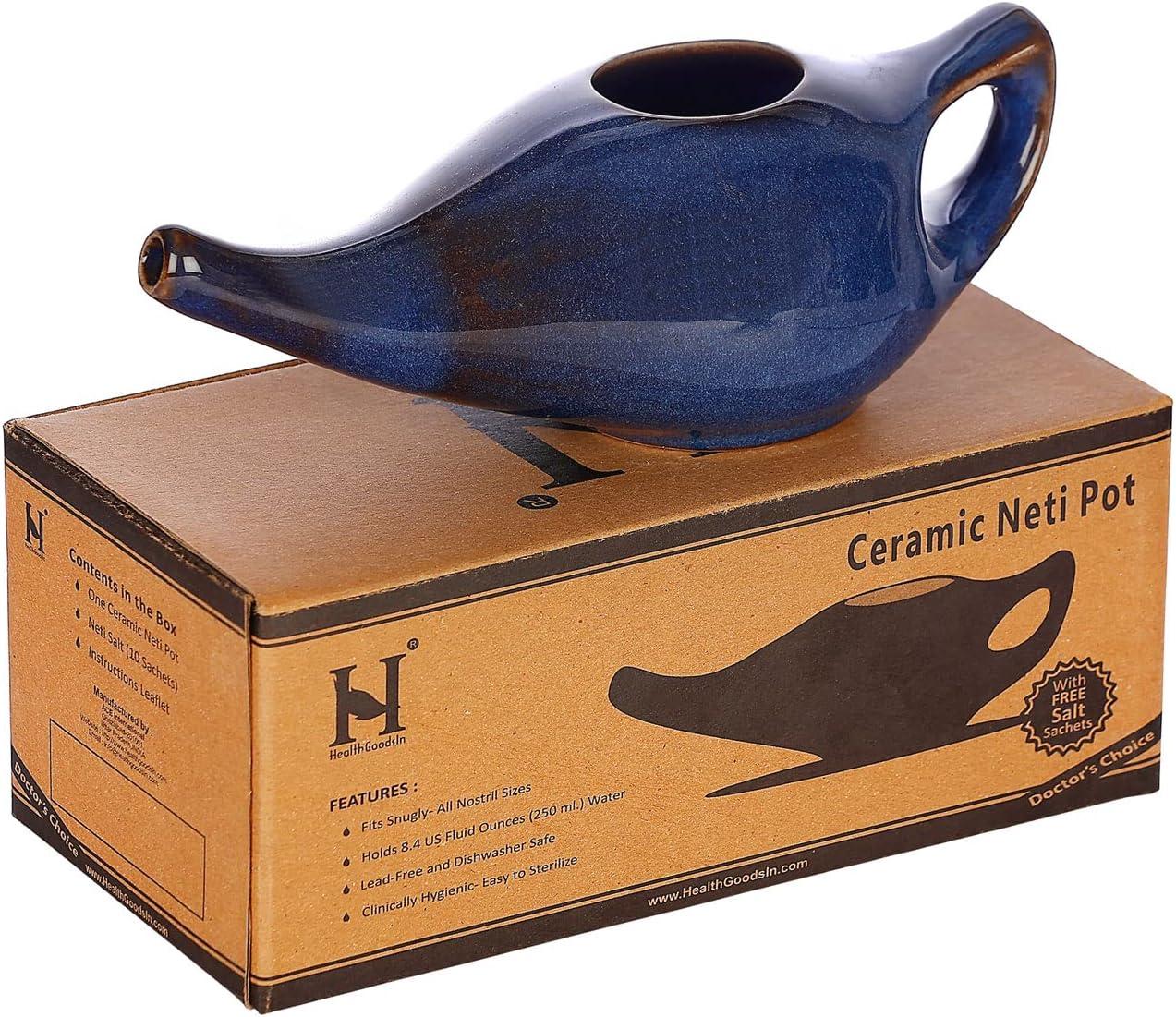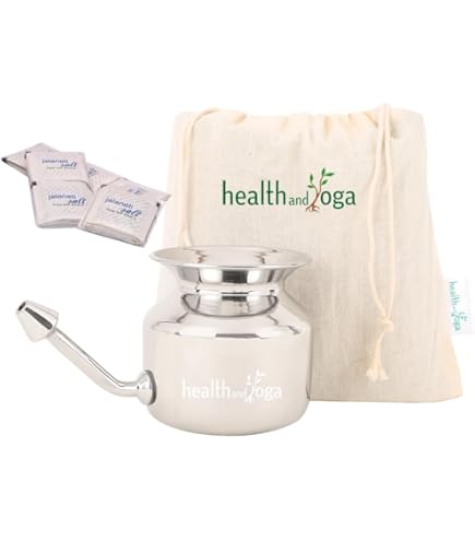 Comparez Ancient Impex Pot Neti en céramique anti déversement avec 5 sachets de sel Neti, passe au micro ondes, couleur vert menthe, capacité : 400 ml chez Notre pot Neti en céramique de couleur blanche pour le nettoyage nasal est une option compacte et facile à transporter pour les personnes en déplacement. Sel Nasal Sachet Ancient Impex Pot Neti En Céramique Anti-déversement Avec 5 Sachets De Neti Pot Lavage De Nez Neti Kriya ou Jala Neti est une ancienne technique ayurvédique utilisée pour nettoyer les voies nasales de toutes les impuretés. Peut contenir 300 ml d'eau. 5 sachets de sel Neti inclus., Fabriqué en Inde. Le museau conique du pot Neti s'adapte confortablement à toutes les tailles de narines. Le matériau en céramique vous donnera les mêmes résultats année après année Nose Wash Kit - 300 ml Bottle + 40 Sachets Nasal Salt - Nasal Shower Il est prouvé que la pratique régulière du neti kriya réduit l'effet des sinus et des allergies sans aucun effet secondaire. Par rapport aux pots en plastique, ces pots sont beaucoup plus robustes et durables et dureront très longtemps. Depuis des âges, les yogis ont pratiqué cette technique pour les innombrables avantages puissants.