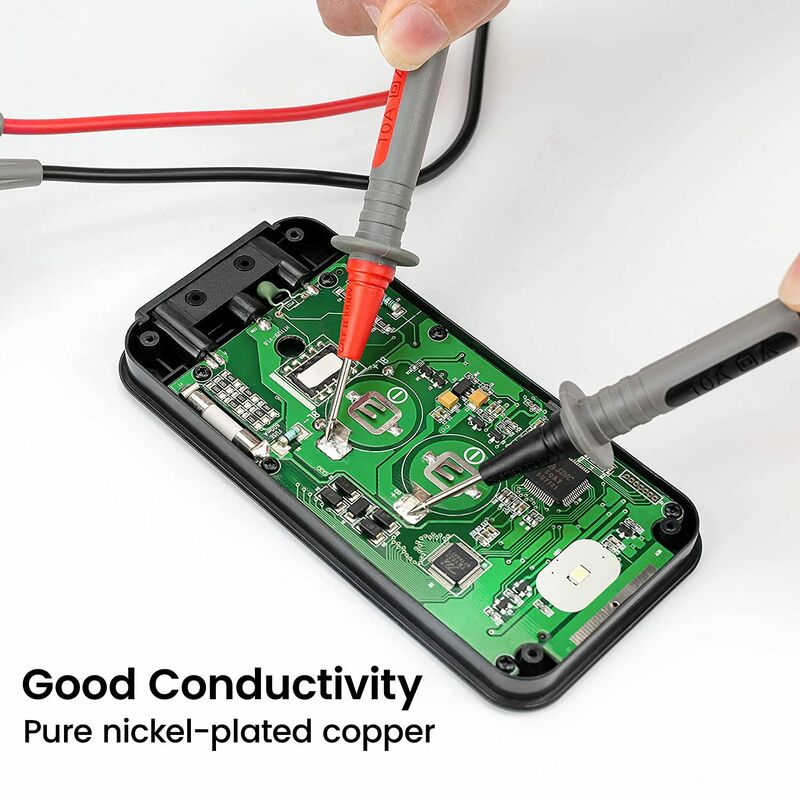 Pinces Crocodile: Il a une largeur d'ouverture de mâchoire et les dents qui peuvent saisir le conducteur pour fournir un test sécurisé et mains libres, peut être utilisé avec des appareils électroménagers et des appareils connectés à une alimentation fixe. Les Produits Incluent: 2 cordons de test, 2pcs broches de test, 2pcs sondes, 2 tête d'insertion en forme de U, 4 fiche banane bâton et 4 pinces crocodiles. Pointes de Stylo: Amovibles et en cuivre au béryllium, facilitent une meilleure connexion avec le circuit imprimé et permettent de réaliser différents appareils électroniques. Sonew ensemble de sondes de test Jeu de câbles de sonde de test Les fils d'alligator sont pratiques pour la plupart des travaux d'électronique légère tels que les expériences, la planche à pain, le prototypage ou le iagnostic des interrupteurs de sécurité défectueux. Senven 3 sets - cordons d'essai pour fiche banane de 4 mm, crochet test câble pour multimètre, ligne d'essai pour pince crocodile à deux têtes, kit de ligne d'essai pour multimètre Câbles De Mesure 600V 10A Fils De Test En Silicone Pour Multimètre - 4 Mm - Connecteurs Banane - Pour La Plupart Des Multimètres Numériques - 1 M Kit Sonde électronique Fiche banane à pince crocodile, 100cm, connecteur ... – Grandado