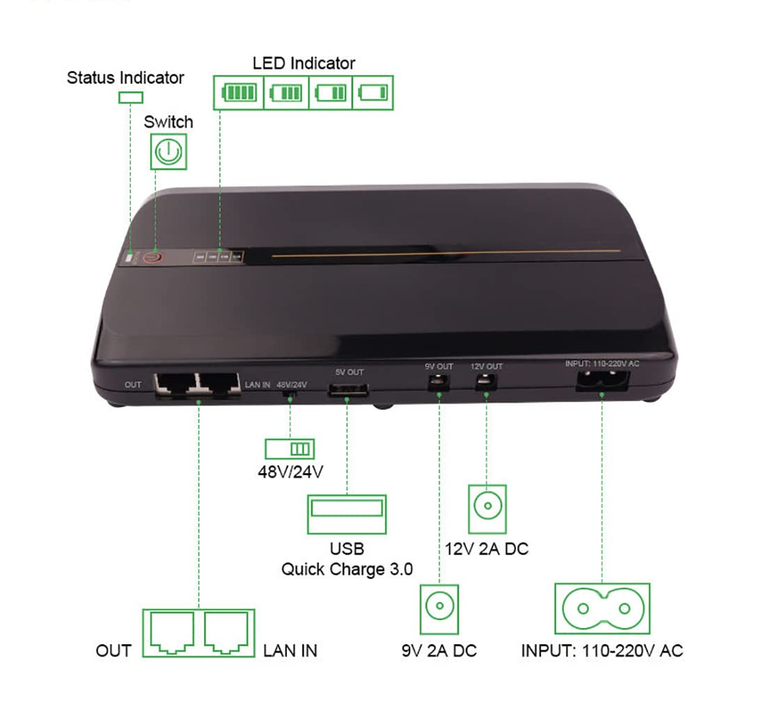 Caractéristiques:-Batterie au lithium intégrée, pas besoin d'attendre la charge, l'alimentation sans interruption est une alimentation de stockage d'énergie de secours. Alimentation sans interruption (UPS) pour les lampes PAPI - RUNWAY LIGHTS -Facile à transporter, de petite taille, facile à transporter, peut être mis dans le sac/la voiture. Il est petit et peu encombrant, vous pouvez donc facilement le glisser dans n'importe quel sac ou valise. Si vous avez des questions sur nos produits, veuillez nous contacter et nous serons heureux de vous servir dans les 24 heures. Alimentation Sans Interruption Sur Fond Blanc. Alimentations De Secours Avec Batterie Ups Avec Stabilisateur Pour Pc A La Maison Onduleur Equipement Pour Systeme Informatique Au Bureau Pour La Securite Protection De Puissance -Coque ignifuge, matériaux de haute qualité, batterie au lithium de grande capacité plus durable, durable et sûre. 【Batterie intégrée】cette alimentation sans interruption est dotée de batteries intégrées d'une capacité de 8 800 mAh, offrant une plus longue autonomie, un port USB standard, qui peut être utilisé comme une banque d'alimentation ordinaire. 【Satisfaction client】 Votre satisfaction est notre priorité absolue ! 9 V CC/12 V CC15 V CC/24 V CCCourant et puissance de sortie : 2A/10W1A/12W0,6A 10W/0,5A 12WCapacité de puissance: 8800mAhTaille du produit: 15,5*12*3,5 cmPoids net du produit : 375-482gListe de produits:1 * alimentation de secours UPSAvis:En raison des effets d'éclairage et des angles de prise de vue, le produit peut présenter des différences de couleur, veuillez l'accepter. SALICRU 662AF000016 Alimentation Sans Interruption UPS Au Format Mini Tour Avec Topologie Line Interactive La Serie Il existe des tolérances dans les dimensions du produit en raison de la mesure manuelle. Capacité de sortie multiple: Avec plusieurs options de sortie (5V/2A, 5V/2.1A, 9V, 12V, 15V et 24V), cet UPS peut soutenir un grand choix de dispositifs, y compris des modems, des routeurs, des caméras de télévision en circuit fermé, et plus