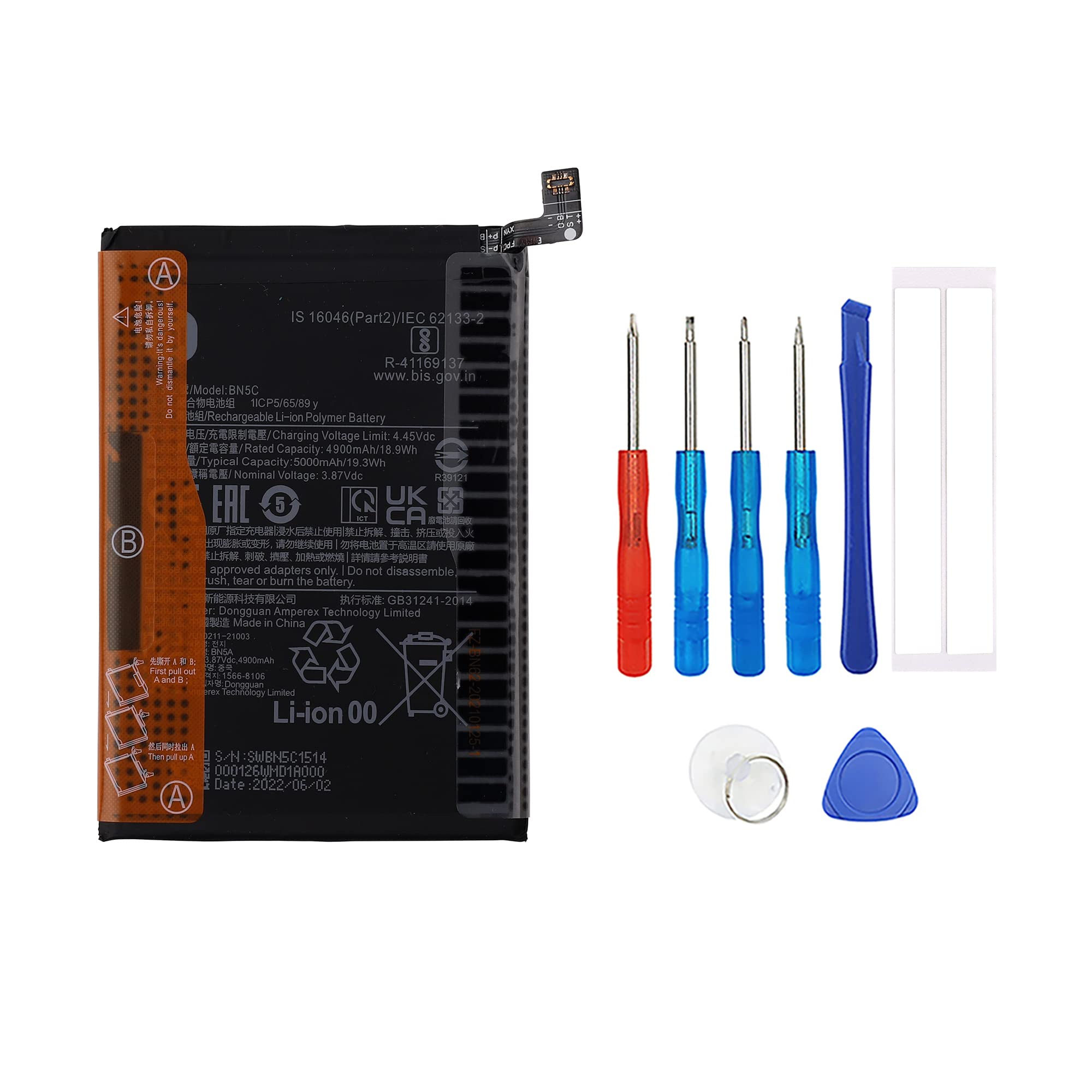 Permettez à vos clients de retrouver une autonomie musclée de leur smartphone grâce à la batterie PREMIUM BN5C pour Poco M4 Pro ! La batterie est une pièce maîtresse au sein du Xiaomi Poco M4 Pro 5G Chaque batterie dispose d'une batterie testée selon des normes de contrôle de qualité strictes et vous offre une charge allant jusqu'à 526+ cycles avec une charge rapide et efficace. Batterie Xiaomi Redmi Note 11 ECRAN Pour Xiaomi Redmi Note 11 5G 21091116AC Et Poco M4 Pro 5G OUTILS Batterie Bn5c Poco M4 Pro 5g Kit Outils Cette batterie est uniquement compatible avec Red-mi Note 11 5G 21091116AC / Poco M4 Pro 5G 21091116AG, MZB0BGVIN / Redmi Note 11s 5G Pas d'instructions, il y a beaucoup de vidéos d'instructions sur YouTube, vous pouvez les regarder. Nous nous occupons de tous les problèmes liés à la qualité avec un remplacement ou un remboursement complet. Batterie Xiaomi BN5C 5000mAh/19.3WH 3.87V , fiables longue durée, remplacement de la batterie du Xiaomi MIUI Poco M4 Pro 5G. Livraison rapide et économies garanties. Besoin d'acheter des batteries Xiaomi BN5C en gros? Contactez nous BN5D batterie de téléphone portable de capacité originale pour Ce que vous obtenez : 1 x batterie de remplacement et kit d'outils de rechange. Cette batterie de rechange mise à jour, installation facile, la même taille que votre batterie d'origine. Nous vous offrons un kit d'outils de rechange gratuit pour remplacer la batterie du téléphone.