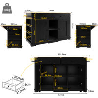 La desserte àroulettes noire offre mobilité et style, parfaite comme meuble cuisine noirmoderne pour cuisiner, manger et ranger efficacement., 1., Caractéristiques du produit : Matériau : MDF, Métal Couleur : Noir, Noyer Dimensions : 151., 5 x 59., 7 x 91., 7 cm Poids : 67., 5 kg Charge maximale : 60 kg Emballage : 3 paquets Assemblage requis : oui 2., Scénarios d'utilisation à domicile: Idéal en cuisine ouverte ou petit espace, pour préparer, cuisiner et servir, avecrangement intégré et branchements pratiques., 3., Design unique: Son plateau extensible, ses roulettes verrouillables et ses prises électriques enfont une pièce ultra-fonctionnelle au design contemporain. Description : Cet ilot cuisine multifonction combine rangement spacieux(tiroirs/compartiments), plateau extensible et prises intégrées. 【Mobilité Optimale】:Desserte à roulettes équipée de 5 roues (dont 2 verrouillables) pour un déplacement facile et une stabilité assurée. Ilot Central De Cuisine - Chariot à Roulette Avec Plateau Extensible 2 Tiroirs Et 4 Portes Noir 97553825 【Prises Électriques Intégrées】:Branchez directement vos appareils (machine à café, induction., ., ., ) sur ce meuble cuisine noir multifonction. Fonctionnalité 2-en-1]:Cet ilot cuisine de 131,5 cm avec plateau extensible (76 cm déplié) sert à la fois de plan de travail et de table à manger, optimisant l'espace dans votre cuisine Ilot Cuisine Ouvert Design Moderne KOMFOTTEU Chariot De Cuisine îlot De Cuisine Avec Plan De Travail Plan De Travail Extensible Dimensions:L'îlot de cuisine mesure 151,5 cm de long, 59,7 cm de large et 91,7 cm de haut