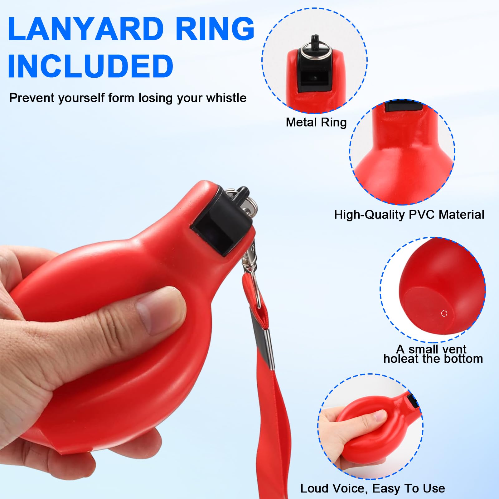 【Appuyez manuellement pour sonner】 Le sifflet à pression peut produire un son fort et clair après avoir été pressé manuellement ; la forte pression lui permet de produire un sifflement plus fort, ce qui est pratique à utiliser. En raison de la mesure manuelle, il existe une tolérance dans la taille du produit. Vgvgaj Sifflet À Main Arbitre Hygiène Hygienic Sports Whistle 12.8X6.7cm Sifflet Poire Professionnel Sifflets Pression PVC Bruyant Sifflets À Main Pression pour Basketball Football Haute sécurité] Comparé au sifflet traditionnel, ce sifflet à main alimenté par une pression manuelle peut éviter le contact avec la bouche, il est donc très approprié pour une utilisation pendant cette période spéciale Léger et portable : le design de la lanière permet d'attacher facilement le sifflet au sac ou de le porter autour du cou. Les Meilleurs Sifflets à Main pour Arbitres : Analyse et Comparatif des 【Convient à de nombreuses occasions】 Le sifflet à main pour enseignant est polyvalent pour divers entraînements et matchs, tels que le basket-ball, le football, le baseball, le volley-ball, le tennis de table, etc. ce qui le rend parfait pour les arbitres. Sifflet Sport Basket Football KNGNGK 3 Pièces Sifflet à Main, Sifflet Hygiénique 11.5 X 6.5 Cm, Sifflet Poire à Main, Sifflet Sifflet Arbitre Sport Hygiénique 【Haute sécurité】 Comparé au sifflet traditionnel, ce sifflet à main alimenté par une pression manuelle peut éviter le contact avec la bouche, il est donc très approprié pour une utilisation pendant cette période spéciale. L'enseignant ou l'arbitre peut tenir le sifflet et le presser pour obtenir un son fort et clair. Spécification:Nom : sifflet à main., Taille: environ 67*67*128mm/2., 64*2., 64*5,04 poucesPoids : environ 76gCouleur : rouge, bleuLieux applicables : convient aux arbitres, aux professeurs d'éducation physique, aux dresseurs de chiens, etc.