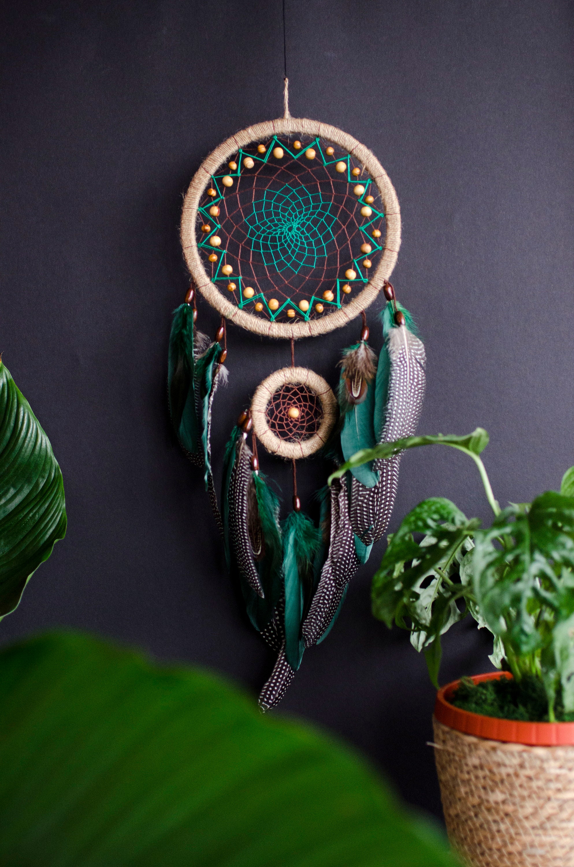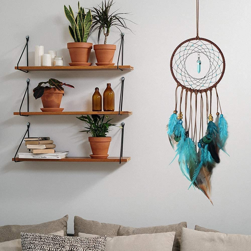 Idéal pour les femmes qui recherchent la romance, les amateurs d'artisanat et les femmes au foyer qui aiment décorer leur espace avec un ornement unique. Description Les dreamcatchers d’Haliotis sont originaux, réalisés un peu comme des bijoux : avec des perles, de très belles plumes et autant d’attention que mes créations de bijoux. Il conviendra parfaitement dans une chambre au dessus du lit ou même pour décorer le salon Cet attrape-rêves sert non seulement de belle tenture murale, mais aussi de grand ceux qui apprécient les arts faits à la main. Améliorez votre espace de vie avec cet attrape-rêves fait à la main, conçu pour éloigner les cauchemars et apporter une touche de style vintage à n'importe quelle pièce Cet attrape-rêves sert non seulement de belle tenture murale, mais aussi de génial pour ceux qui apprécient les arts faits à la main Attrape-rêves Artisanal Dreamcatcher Avec Fils Perles Et Plumes Halloween Symbole Amérindien Déco Mariage Thème Naturel Caractéristiques : Composant : plumes, perles, fer, etc. Idéal pour accrocher dans les chambres, près de la fenêtre ou près de bureaux, il crée une atmosphère sereine et rehausse le style de votre décoration d'intérieur Avec ses perles à plumes et ses fleurs, cet attrape-rêves dispose d'un design créatif pour une décoration exquise Couleur : conforme à l'image., Longueur : environ 70 cm., Quantité : 1 pièce. Dreamcatcher avec perles bleu - Lwiza Hand Made Merci de ne commander que si vous acceptez cette marge d'erreur. Crochets et rails,Crochets robustes pour plantes d'extérieur, 2 pièces...