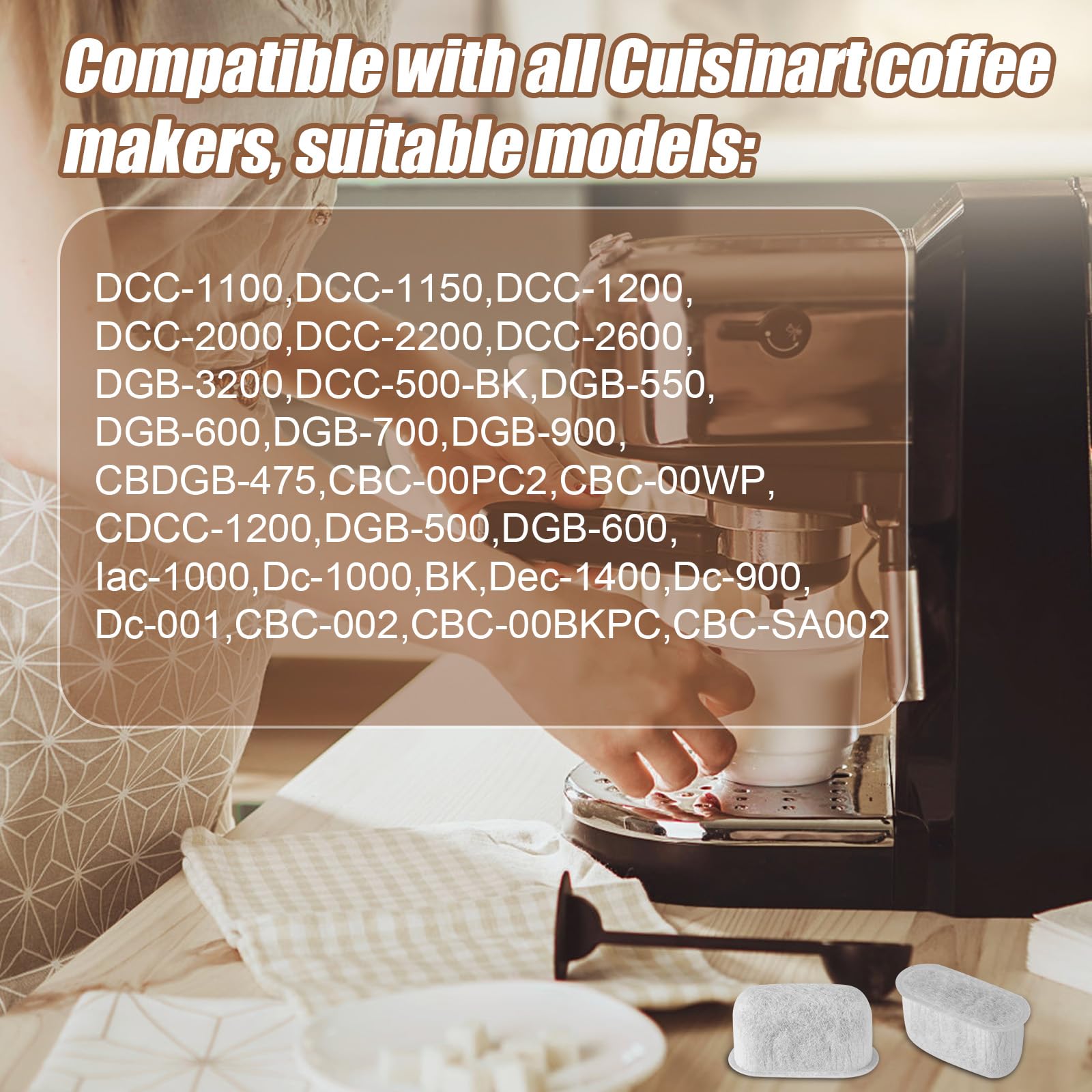 Accessoire Machine à Café Lot De 2 Filtres à Eau Cuisinart C1200440 - Compatible Machines à Café DCC1200E, DGB600BCE, DGB900BCE, Qualité Charbon Actif Filtres Charbon Machine à Café Filtres à Eau Cafetière HQ16354-12pcs Filtres à Eau à Charbon Actif De Remplacement Pour Filtres à Charbon Actif Rechange Cafetière Cuisinart Remplacez-le plus souvent, si vous avez de l'eau dure dans votre région Remplacez les filtres à eau Cuisinart tous les 2 mois ou toutes les 60 recharges de réservoir d'eau. Contenu : lot de 8 filtres à charbon pour cafetières Cuisinart, pour garantir un café délicieux et frais Les filtres à charbon actif : Comment fonctionnent-ils et quels contam Filtration : les filtres à eau au charbon réduisent les impuretés, le calcium, le chlore et les odeurs, créant le meilleur café pour tous les amateurs de café Le sac de charbon actif pour filtre de machine à café peut éliminer les impuretés, le calcium, le chlore et les odeurs, qui peuvent être nocifs pour la santé, réduire le calcaire et augmenter la durée de vie de votre cafetière Utilisations : remplacez les filtres à eau Cuisinart tous les 2 mois ou toutes les 60 recharges de réservoir d'eau. Remplacez-le plus souvent, si vous avez de l'eau dure dans votre région.