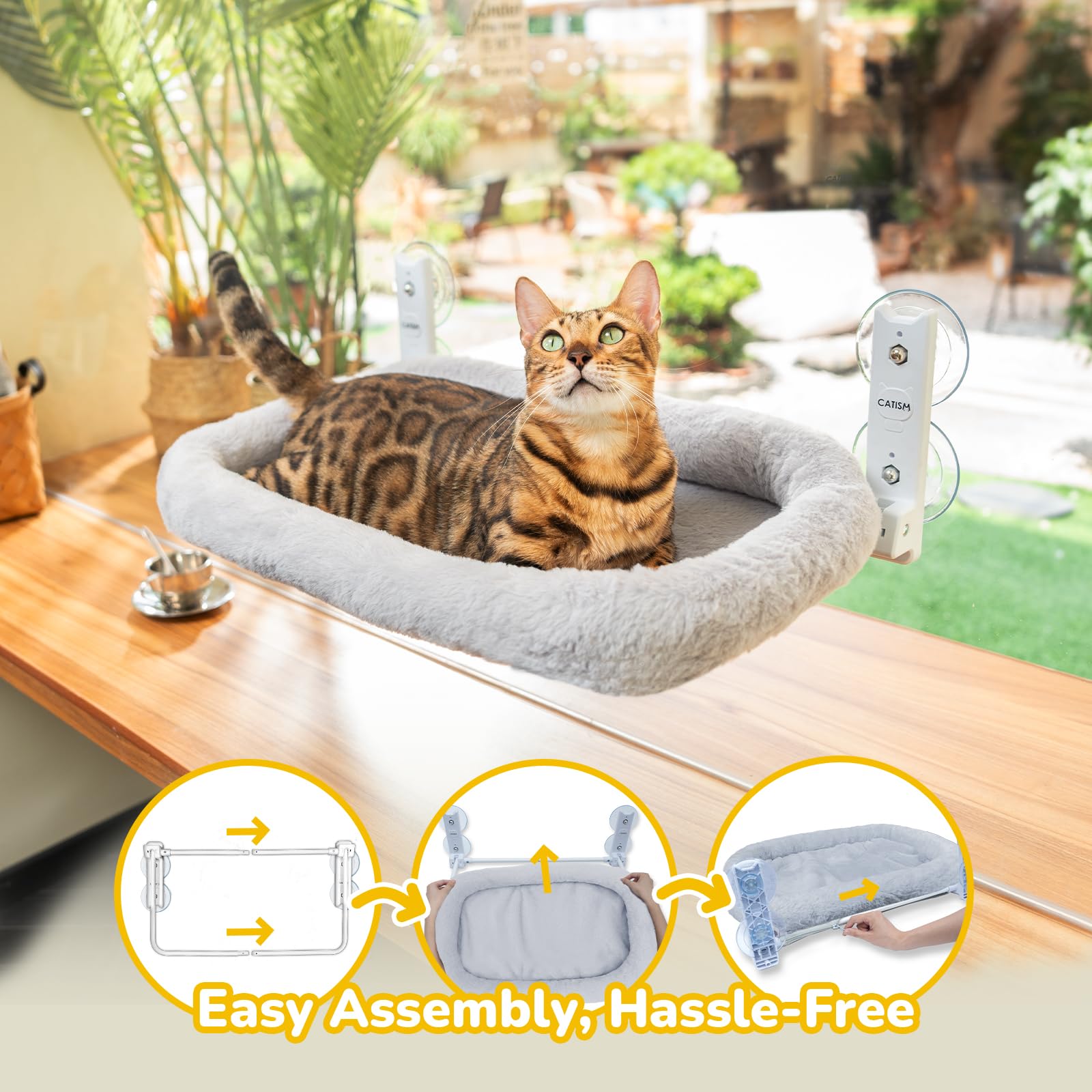 Les chats peuvent y dormir confortablement, se prélasser au soleil et observer les oiseaux. Notre lit pour chat est parfaitement adapté pour les fenêtres ≥ 53 cm. Avec ses dimensions de 45 x 30 cm et une hauteur de 8,3 cm, la chaise longue de fenêtre pour chat offre suffisamment d'espace pour que vos compagnons puissent se reposer confortablement Il offre un environnement douillet et sécurisé qui répond à tous les besoins des chats. Le cadre sans cordon permet aux chats de sauter en toute sécurité d'un hamac à l'autre sans risque de s'emmêler ou de se blesser. Séchez-les soigneusement, nettoyez la surface vitrée, puis appuyez fermement pour expulser l'air et assurer une bonne fixation Fenêtre Chat GUUSII HOME Hamac Chat Fenetre Perchoir Lit Fenêtre Panier Suspendu Etagere Pour Grande Chats Pliable Transat Facile à Monter Avec Ventouse Puissante Tapis Réversible 53 * 30cm Jusqu'à 18kg (Blanc Idéal pour les chats qui aiment grimper et prendre des bains de soleil Lorsqu'il n'est pas utilisé, il se plie facilement, laissant vos rideaux ou vos stores complètement dégagés Installation Simple : l'installation de notre hamac chat fenêtre est très simple. Un côté est en maille pour offrir un confort frais et respirant en été, tandis que l'autre est en peluche douce pour une chaleur douillette en hiver, ce qui en fait un choix idéal pour toutes les saisons. Hamac De Fenêtre Pour Chat Avec Cadre En Bois Et Métal Pour Grands Chats Etagere Stable Et Lavable Lit Reglable Pour Rebord De Fenetre Table De Chevet Tiroir Et Armoire Pouvant Supporter Jusqua 18 Kg Taille M 551 X 381 X 175 Cm Deux Housses De plus, il est équipé d'une fermeture éclair pour faciliter son retrait et son lavage Spacieux et Pliable : Mesurant 52 x 30 cm, notre hamac chat fenêtre offre suffisamment d'espace à votre compagnon félin pour se détendre et profiter de la vue. Le cadre sans cordon permet aux chats de sauter en toute sécurité d'un hamac à l'autre sans risque de s'emmêler ou de se blesser