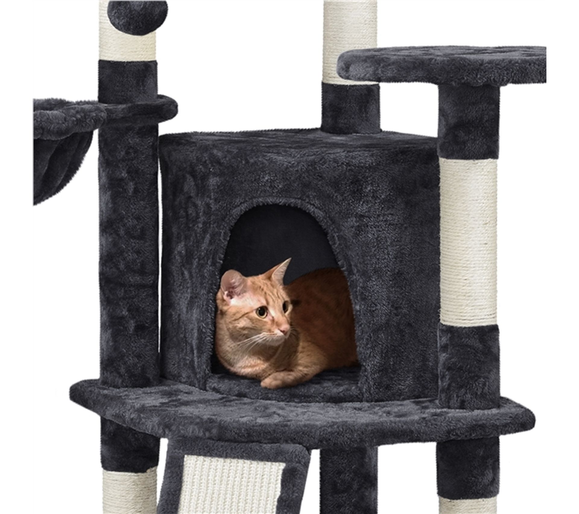 Comprend quatre balles suspendues interactives, qui maintiennent vos amis félins joyeusement engagés Arbre à chat multi-équipements griffoirs grattoirs niche plateformes échelle hamac boule suspendue gris ; Largeur. 44 cm ; Hauteur. 132 cm ; Poids. 12 kg Package includes: 1 x Arbre à Chat 1 x Manuel d'Assemblage Son design moderne et élégant s'intègre parfaitement à votre décoration intérieure existante MONTAGE RAPIDE ET PRATIQUE : Suivez les instructions détaillées pour assembler facilement cet arbre à chat très solide par une seule personne, transformant n'importe quel espace en un paradis pour chats en seulement 45 minutes AIRE DE JEU TOUT-EN-UN POUR CHATS : Combinez le plaisir et l'aventure avec ce grand arbre à chat de 165 cm de hauteur, doté de 2 niches douillets à deux portes, un perchoir sommet, des plateformes de saut, une rampe et un hamac, idéal pour les foyers avec plusieurs chats L'arbre à chats PawHut offre un sanctuaire sécurisé et tout-en-un. Arbre À Chat En Sisal Griffoir Grattoir Tour De Jeux Hauteur 106cm Noir Dispose de condos spacieux avec des entrées doubles, convient aux chats de toutes tailles Vous en avez assez du désordre chez vous, de chats ennuyés et de meubles griffés ? L'inquiétude liée à un arbre à chat bancal qui pourrait basculer pendant les jeux les plus dynamiques est source de stress. Plusieurs poteaux enveloppés de sisal répondent aux instincts de grattage, protégeant vos précieux meubles Offrez à votre félin un espace de jeu et de repos avec un arbre à chat PawHut. Ces équipements sont conçus pour répondre aux besoins naturels de votre compagnon à quatre pattes Arbre à Chat 165 Cm PawHut Arbre A Chat, Griffoir Pour Chat, Perchoir, Niches, Hamac, Balles Griffoir Sisal Pour Chats Grâce à son design robuste à base large et à ses poteaux moelleux recouverts de sisal, il permet à vos chats de grimper et de griffer en toute sécurité, rétablissant ainsi l'harmonie dans votre espace de vie.
