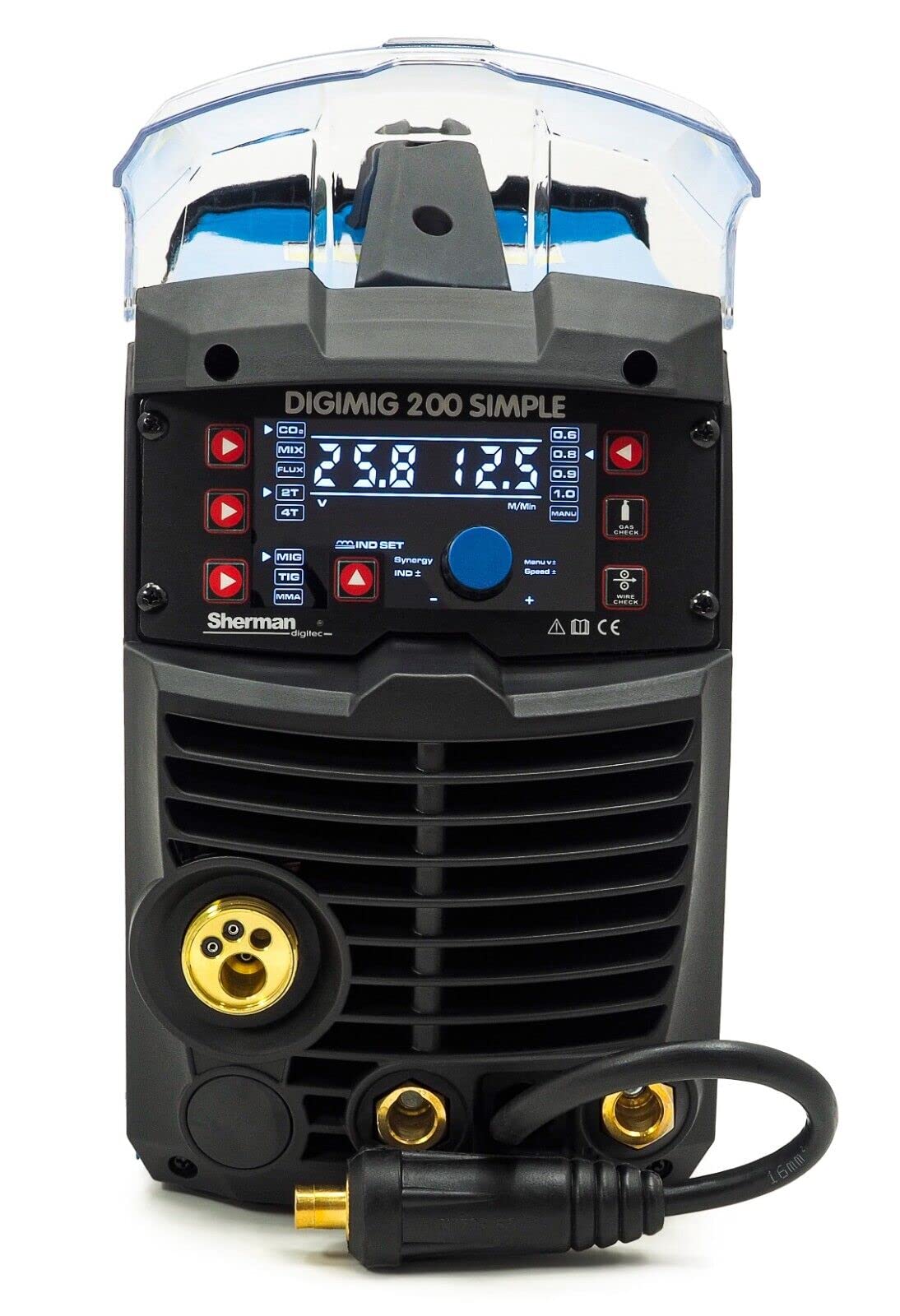 La méthode MIG peut être utilisée à la fois en mode manuel et en mode synergique, ce qui simplifie son fonctionnement. L'ensemble comprend : ✔️ Sherman DIGIMIG 200 SIMPLE Poignée MIG MB-15 - 3 m Poignée MMA (électrodes) - 2 mètres. Une diminution de l'inductance rend l'arc plus stable et plus concentré, une augmentation de l'inductance contribue à un bain de sueur plus liquide et réduit le nombre d'épidémies Le dispositif de réduction de tension (VRD) offre une sécurité supplémentaire pour le soudeur et les autres personnes dans l'environnement, en particulier dans les environnements où il existe une probabilité accrue de choc électrique, par ex. Une augmentation de l'inductance, qui est utile lors du soudage de pièces minces, crée un bain de soudage plus lisse. Grâce au changement de polarité, la machine permet le soudage MIG à la fois avec des fils de gaz de protection standard et des fils de poudre auto-consommés. Régulation de l'inductance - Elle permet d'optimiser le processus de soudage en fonction de l'épaisseur de la pièce et des conditions de soudage. Le poste à souder Synergie DIGIMIG 200 SIMPLE est un appareil facile à utiliser pour souder l'acier et les métaux non ferreux utilisant les procédés MMA (électrode métallique), TIG Lift (allumage à lumière de friction) et MIG La source sélectionne automatiquement la vitesse d'alimentation du fil et le courant de soudage en fonction des données programmées. L'appareil dispose d'une mémoire pour le dernier réglage, c'est-à-dire que lorsqu'il est éteint et rallumé, les derniers paramètres définis sont restaurés. agnu 223 LCD Dual Puls Synergie Schweißgerät Inverter IG AG A WIG FLUX - Soudage à l'arc avec fil en poudre qui ne nécessite pas de bouteilles de gaz. HOT START, ARC FORCE et VRD peuvent être réglés pendant le soudage MMA. Utile pour les pièces fines et le brasage dur pour éviter d'endommager la couche de zinc protectrice. Avec cette méthode, la soudure fond et non le matériau avec lequel vous travaillez Caractéristiques principales : Synergie - Cette fonction facilite la sélection des paramètres optimaux dans le processus de soudage. Avec le brasage, des feuilles minces sont connectées, recouvertes d'une couche de zinc. Lorsqu'une goutte de métal se détache de l'électrode, le courant est automatiquement augmenté à une certaine valeur avec l'interrupteur correspondant. Démarrage à chaud : assure la plus haute qualité du début de soudage, allumage de première classe - au moment de l'allumage de l'arc, pendant un court moment, le courant de soudage de travail augmente du niveau de travail réglé au niveau optimal. Une diminution de la valeur de démarrage à chaud pour réduire la consommation d'énergie dans un réseau faible ou augmenter la valeur dans un réseau solide facilite grandement l'allumage. Dans certains cas (lorsque vous travaillez avec un réseau ou un générateur faible), ce niveau peut être réglé manuellement s'il y a un interrupteur approprié (comme dans la série Professional). Bouteille de gaz (pleine, neuve) 8 litres Ar/Co2 (MIX) Réducteur Ar/Co2 Fil de soudure SG2 - 5 kg - 0,8 mm Spray anti-éclaboussures (2 pièces) Gants de soudeur Accessoires de soudage MIG Rouleau pour fil d'acier 0,8/1,0 mm (monté). Elle dépend du diamètre du fil de soudure, du gaz de protection utilisé, du courant et de la position de soudage. La deuxième partie du nom, MIG/MAG, provient de l'application d'un procédé dans lequel le fil fond dans un arc entouré de gaz protecteur, préparant le bord du matériau comme dans le soudage traditionnel. Mig Poste A Souder Sherman DIGIMIG 200 Synergic - 200A Poste A Souder MIG Avec Gaz Et Sans - Synergie Complète - Poste MIG 3en1 - MIG MMA LIFT-TIG - Avec Soudobrasage Soudeur Inverter Synergie Facile à Utiliser Le support MIG, le câble de terre et le câble d'électrode sont inclus. Démarrage à chaud : assure la plus haute qualité du début de soudage, allumage de première classe – au moment de l'allumage de l'arc, pendant un court moment, le courant de soudage de travail augmente du niveau de travail réglé au niveau optimal. agnu 223 LCD Dual Puls Synergie Schweißgerät Inverter IG AG A WIG... En réduisant l'inductance, l'arc est plus stable et plus concentré, créant ainsi une meilleure pénétration. Par exemple : environnement chaud, environnement humide, etc. Avec cette méthode, la soudure fond, et non le matériau avec lequel vous travaillez. En réduisant la force de l'arc, la consommation d'énergie d'un réseau faible peut être réduite ou augmentée avec un réseau solide, la stabilité de la combustion de l'arc est améliorée.