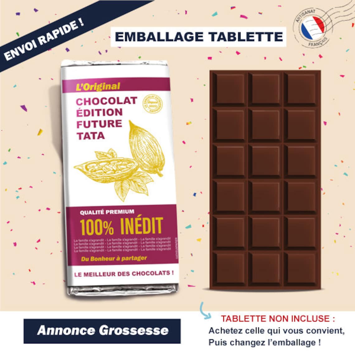 Chocolaterie : Nos emballages en aluminium chocolat sont adaptés à la chocolaterie de type Dubaï, ces feuilles de 19 x 16 cm sont parfaites pour emballer vos chocolats faits maison Emballage de Luxe : Emballage en aluminium chocolat, transformez vos chocolats en trésors dorés, nos produits de luxe sont idéaux pour faire de chaque chocolat une bénédiction festive Décorations Festives : Entrez dans l'esprit des fêtes avec nos embellissements en papier d'aluminium. Étiquette D'emballage De La Tablette De Chocolat Noir Et Lait | Vecteur Premium Polyvalent : Notre papier d'emballage de chocolat en aluminium peut être simplement plié pour transformer le chocolat en briques d'or qui sont aussi belles et savoureuses qu'elles sont belles et protègent chacun de vos chocolats, rendant vos chocolats encore plus glamour Chaque tablette de chocolat est unique et nos emballages sont conçus pour être à la hauteur de cette singularité. Vous pouvez rajouter un socle dans le fond de la boîte pour une présentation encore plus sophistiquée Lot De 100 Feuilles Luxe LUHOCIY100 Pièces Emballage Tablette Chocolat, Papier Alimentaire Noel Papier Chocolat Diy Pour mettre en valeur ces spécificités, nous vous proposons une gamme large et 100% personnalisée : de l'étui tablette carton aux sachets transparents en passant par l'étui livre. Nous associons nos solutions efficaces à nos sélections élégantes pour habiller vos délicieuses créations