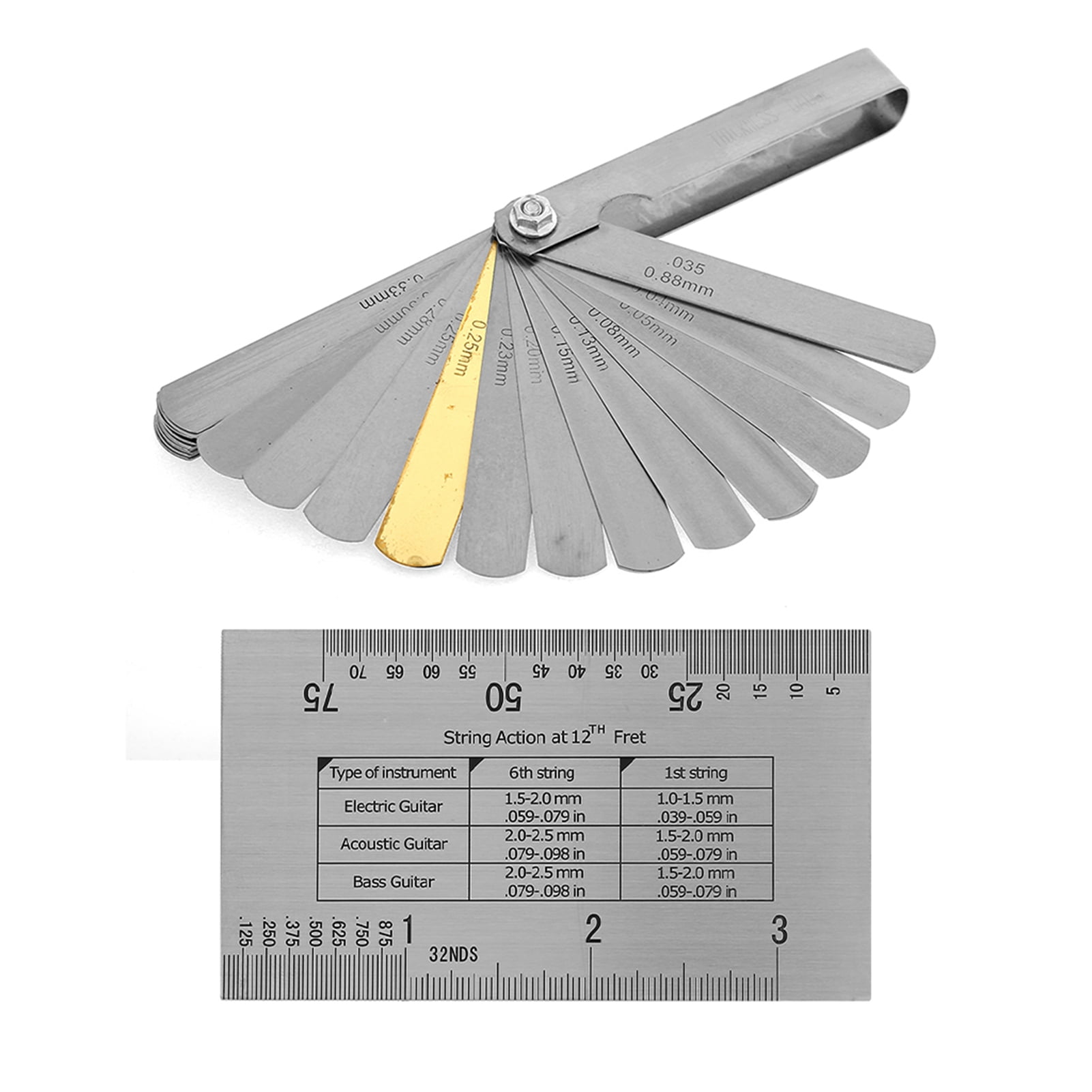 Règle HBM en cier inoxydble de mm - Mètre | HBM Mchines 2 tailles de protection pour frettes : les protections de frettes en acier inoxydable en 2 tailles sont spécialement conçues pour protéger la touche tout en travaillant sur vos frettes. Outil Réglage Hauteur Cordes Akozon Ponceuse De Guitare GuitarString Action Règle Ensemble D'outils Jauge Pour Luthier Et Guitariste Bricoleur L'outil de jauge de guitare est largement utilisé pour les instruments à cordes, tels que la guitare, la basse, la mandoline, le banjo, etc. si vous n'êtes pas satisfait de notre produit reçu, vous pouvez demander un retour inconditionnel et un remboursement sous 180 jours. Vous pouvez également nous envoyer des e-mails à tout moment si vous rencontrez un problème avec ce produit. GHS Cordes de guitare électrique,09-42,Precision filet plat,acier... Jauge-étalon,Règle à échelle de haute précision,règle de trou de Type T Outil de guitare pratique : la jauge fournit une mesure précise de la hauteur des cordes, de la hauteur de la selle de chevalet, de la profondeur de la fente de selle, de la hauteur du piquet du micro, de la profondeur de la fente de frette et de la hauteur de l' Matériau de qualité supérieure : la jauge de cordes de guitare adopte principalement de l'acier inoxydable de haute qualité, qui est antirouille et durable, très pratique et utile, outils de mesure préférés pour les luthiers, les guitaristes. Contenu : 1 jauge de cordes de guitare, 1 lot de protections de frettes