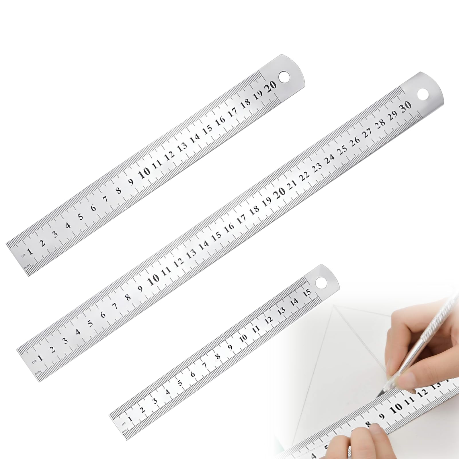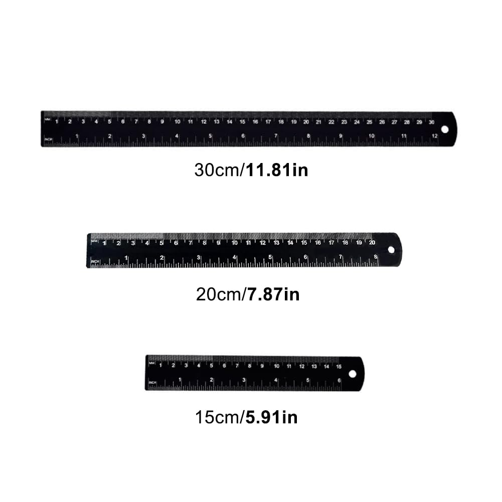 Kit De Règles De Mesure En Acier Inoxydable, Ensemble De Règles En Métal 3 Pièces Comprenant Une Règle De 12 Pouces (30 cm), 8 Pouces (20 cm) Et 6 Pouces (15 cm) Marque La finition chromée noire offre une résistance aux rayures et à la corrosion et maximise la lisibilité en obtenant une surface de lecture à contraste élevé sans éblouissement qui améliore la lisibilité dans des conditions de faible luminosité et de luminosité. Règle Acier Inoxydable Qingmeng Lot De 3 Règles En Métal, 15 Cm, 20 Cm, 30 Cm, Règle De Coupe Double Face, Règle De Coupe, Règle En Acier, Règle En Acier Inoxydable, L' Enseignement, Le Bureau (noir Regle 15 Cm Metal Spécifications: Contenu de la livraison : 3 règles en acier inoxydable, règle de mesure double face de 15 cm, 20 cm et 30 cm, l'échelle millimétrique se trouve sur un bord de la règle et l'échelle en pouces sur l'autre bord ; peut répondre à vos différents besoins de mesure. L'extrémité à angle droit peut vous aider à effectuer des mesures plus précises, et l'extrémité incurvée est confortable pour vous et ne blessera pas vos mains en raison de l'angle tranchant. Ce kit de règles en métal est adapté pour les arpenteurs, les architectes, les enseignants, les designers, les artistes, les ingénieurs, les machinistes, les bricoleurs au bureau, à l'école, le dessin, l'ingénierie et d'autres tâches. Ce que vous obtenez : 3 règles en acier inoxydable de différentes tailles - 15cm, 20cm, 30cmDeux échelles, métrique et impériale, des marques claires pour faciliter les mesures, qui ne s'effacent pas avec le temps.La surface des règles est lisse et sans bavure, l'une des extrémités est munie d'un trou qui permet de la suspendre facilement et d'en faciliter le rangement.Outil de mesure... Vueinrg Lot de 4 règles étalliques en acier inoxydable de précision 15 Très facile à lire : règle en acier - La surface est chromée noire avec des graduations remplies de blanc. Facile à utiliser : la règle en acier inoxydable en métal a une surface lisse, une extrémité de la règle est à angle droit et l'autre extrémité est en forme d'arc. La règle en acier inoxydable est durable, mais n'oubliez pas de ne pas plier la règle.