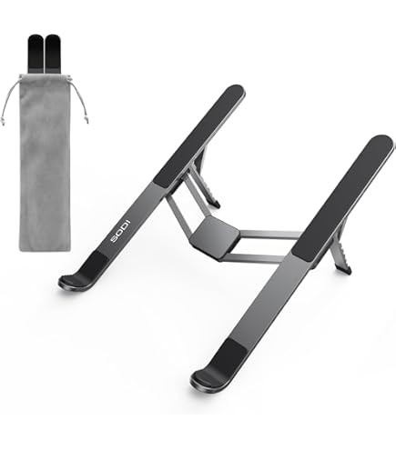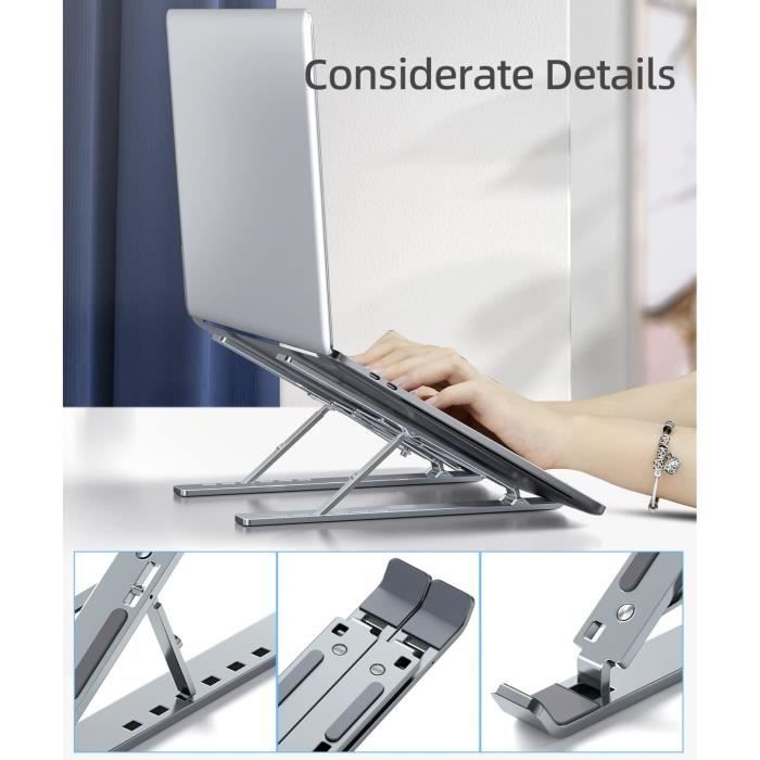 Compatibilité universelle : support pour ordinateur portable, compatible avec les appareils de 10 à 16, y compris les ordinateurs portables, iPads, liseuses électroniques et Chromebooks tels que MacBook Air/Pro, Google Pixelbook, Dell XPS, Samsung, HP, ASUS, Lenovo ThinkPad, Acer, Chromebook, Microsoft Surface, Huawei MateBook 13/14, iPad Pro, Kindle et plus encore. SODI Support pour ordinateur portable - Support portable et pliable pour ordinateur portable, support de tablette à dessin réglable pour le travail, support ergonomique en aluminium pour MacBook Pro Ce support compact et portable en alliage d'aluminium combine un design élégant avec des fonctionnalités pratiques. Ventilation et dissipation de la chaleur : grâce à son design creux en alliage d'aluminium 100 %, le support pour ordinateur portable peut maximiser le flux d'air, garder l'ordinateur portable au frais et éviter la surchauffe, ce qui évite efficacement les dommages causés par la surchauffe et la perte de puissance résultant d'une utilisation prolongée de l'ordinateur. Une fois sécurisé, il offre une surface de frappe ferme sans vacillement. Facile à utiliser : équipé de pieds de support élastiques et d'un mécanisme de verrouillage automatique sans couture, ce support pour MacBook permet des ajustements doux et précis. Avec 6 niveaux réglables, l'ordinateur portable s'adapte à vos besoins, s'intègre parfaitement à plusieurs moniteurs et améliore l'efficacité et le confort ergonomique sur le lieu de travail. W&Z Laptop Stand Ergonomic - Rehausseur d'ordinateur portable en... Avec un poids de seulement 168 g et une taille compacte de 127 x 44 x 21 mm une fois plié, le support peut être facilement transporté. Sodi Support Réglable Pour Ordinateur Portable Jusqu'à 15,6 Support Aluminium MacBook Dell SODI Support Portable Pour Ordinateur Portable, Réglable En Hauteur Et Pliable, Universel, Pour Ordinateurs Portables De 10 à 16 Pouces (pour MacBook Pro/Air, Pour Dell, HP, Sony) Support Minimaliste Support Hauteur Ajustable Parfait pour les utilisateurs qui préfèrent un support pour les petits ordinateurs portables ou les Chromebooks avec souris pour augmenter le confort. Il offre 6 niveaux de hauteur (de 19,5 mm à 117 mm) et un angle d'inclinaison de 15 à 30 degrés pour permettre un travail ergonomique et réduire les tensions cervicales. Cela favorise une posture assise saine et réduit considérablement la fatigue oculaire, les douleurs au cou et aux épaules lors de longues périodes d'écran. Portable et pliable : avec seulement 168 g, ce support pour ordinateur portable est réglable en hauteur idéal pour les déplacements. Parfait pour les professionnels et les étudiants qui ont besoin d'un support fiable et portable pour le travail mobile ou l'apprentissage.