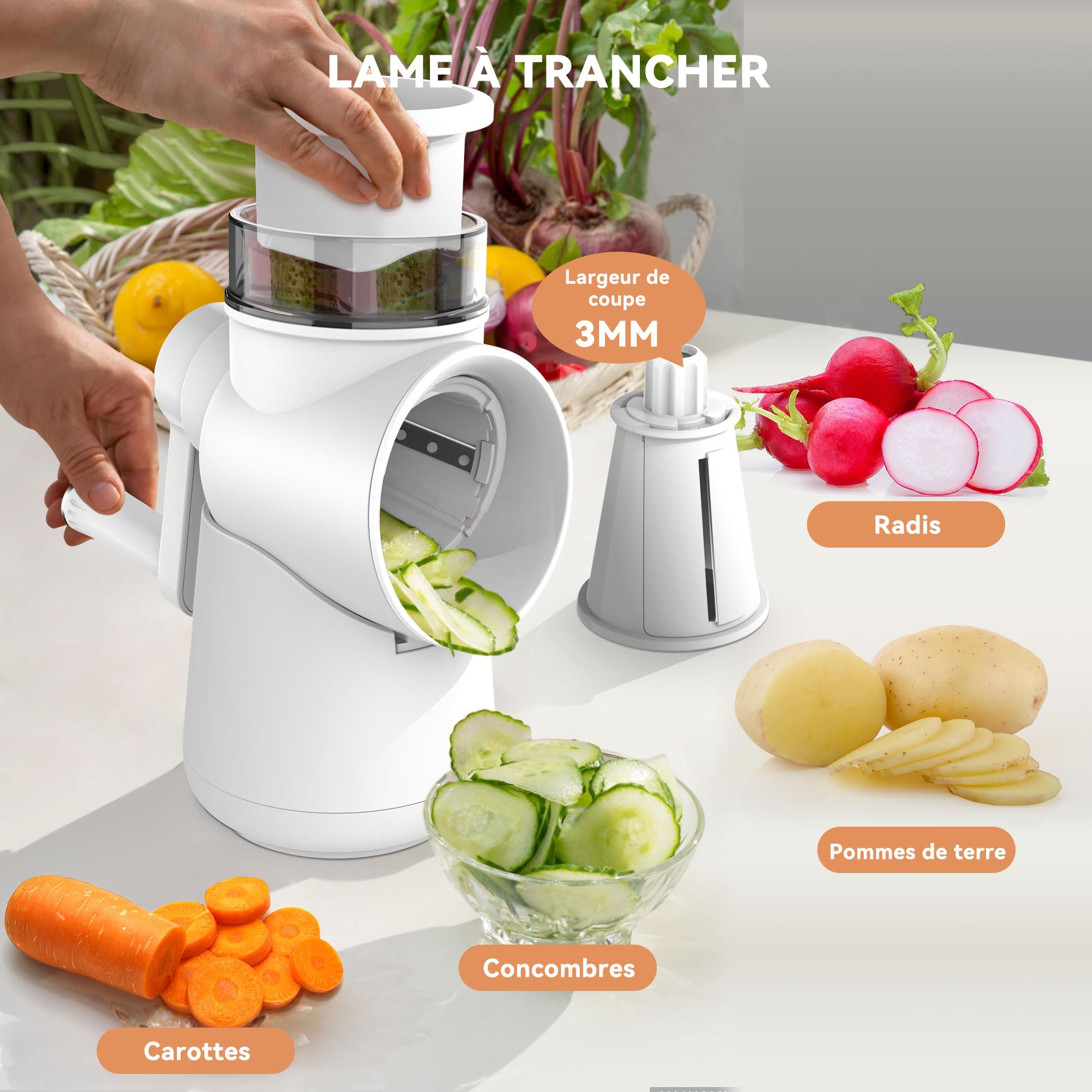 Idéal pour légumes, fruits, fromage et plus. Rincez le coupe-légumes sous l'eau en quelques secondes pour terminer le nettoyage. Spécifications: Matériau: Plastique, acier inoxydable, Couleur: Argent Noir Découpe Légumes Électrique Efficacité Râpe legumes electrique, contient 4 cônes interchangeables différents. Midas Trancheuse De Fruits, Coupe-Légumes Spirale 5 Lames Râpe À Contenu du colis: 1 x Râpe légumes éléctrique, 4 x Lames à cône, 1 x Poussoir alimentaire, 1x Presse-purée, 1 x Manuel Aucun danger pour votre santé. Économisez beaucoup de temps et énergie. 【Matériaux de Haute Qualité】: Lames en acier inoxydable et plastique sans BPA garantissant une cuisine saine et sûre. Tous les matériaux qui entrent en contact avec les aliments sont sans BPA. Coupe-légumes électrique 5 en 1 avec râpe à Entraînement puissant: le coupe-légumes électrique dispose d'un puissant moteur de 150 W pour une coupe rapide et précise Cette trancheuse électrique de 150 W peut rendre la préparation des aliments rapide et efficace., Matériaux sans BPA. Toutes les pièces en contact avec les aliments sont de qualité alimentaire. Robot de cuisine multifonction] : le chipper électrique est équipé de 5 lames interchangeables en acier inoxydable : une grille de coupe, un râteau fin, un râteau grossier, des lames broyées et des lames de râpe à glace Juste une opération à bouton unique,tube d'alimentation de 5,5cm, large goulotte pour une utilisation facile; Conception amovible, facile au nettoyage. Plaque en plastique taille: 20 x 18cm Acier inoxydable hauteur du corps: 18cm 【Efficace & Économe en Énergie】: Ce trancheur électrique dispose d'un puissant moteur de 150 Watts pour une coupe rapide et précise. Trancheuse Râpeuse Fromage électrique COOCHEER Râpe électrique, Coupe-légumes Et Fruits électrique 150 W Avec Trancheuse Electrique Adapté à un usage quotidien, préparer un dîner sain est beaucoup plus facile que vous ne le pensiez auparavan!, !, ! Dimensions compactes (20,5 x 15 x 28,3 cm) pour gagner de la place dans la cuisine. Description du produit Aide de Cuisine Multifonction Coupe legumes electrique, moteur de puissance 150W. Avec un poids de seulement 1,48 kg, c'est un assistant culinaire indispensable pour un usage quotidien.