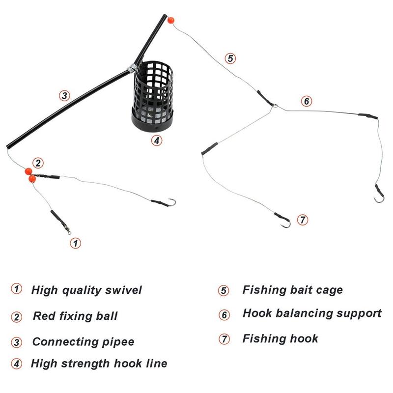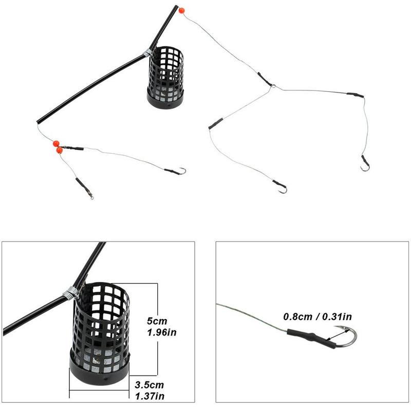 Ensemble complet : comprend une cage d'alimentation, des bas de ligne d'hameçon, des plombs et des poids pour une solution complète de matériel de pêche Cage à appâts pour pêche à la carpe, mangeoire à poissons avec support, méthodes en ligne, appâts de pêche, appâts cages, hameçons, plombs et poids La cage spécialement conçue permet une libération contrôlée des appâts, des granulés ou des aliments en vrac pendant la pêche Nourrisseur de Carpe Appâts de Pêche Cages Hameçon Ensemble de Gréement Méthode en Ligne Nourrisseur d'Équipement Construction en ligne : dispose d'un système de montage en ligne sécurisé pour une meilleure présentation et une réduction des enchevêtrements lors du lancer Iyowei Lot de 5 supports de cage à appâts avec lanceur, accessoire de pêche à la ligne pour mangeoire à la carpe, 6 × 3,5 cm Cage Pour Pêche à La Carpe CAGE À APPÂTS Pour Lancer à Longue Portée Augmenter Le Poids Carpe Technique Pêche Précision Nos méthodes de pêche sont éprouvées et donnent des résultats élevés. Cela garantit une solidité et un succès assuré pour la capture de grosses carpes et autres poissons