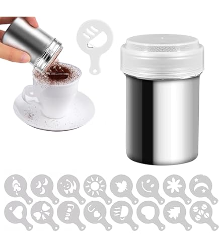 Emballage : le paquet contient 6 pièces de saupoudreuse à sucre en poudre, 3 tailles de capacité, 2 pièces de chaque taille, avec 16 pochoirs à café de différents motifs pour répondre à différents besoins et préférences. Emballage : le paquet contient 6 pièces de saupoudreuse à sucre en poudre, 3 tailles de capacité, 2 pièces de chaque taille, avec 16 pochoirs à café de différents motifs pour répondre à différents besoins et préférences Lot de 6 saupoudreurs de cacao pour cappuccino, 3 tailles, en acier inoxydable, avec 16 pochoirs à café, accessoires pour gâteaux, chocolat chaud, pain, accessoires de café Description: Nom : saupoudreur de cacao pour cappuccino Matériau : acier inoxydable. Utilisation polyvalente : les moules et outils de décoration de café peuvent être utilisés pour une variété de créations de bricolage telles que les lattes, les cappuccinos, les flocons d'avoine, les chocolats, les gâteaux et autres desserts pour créer une variété de motifs intéressants. Facile à utiliser : taille compacte, poids léger et facile à utiliser. Le moule à café pour cappuccino est fabriqué en plastique PP, sûr et durable. Couvercle en plastique étanche à l'humidité pour garder la poudre sèche. Ajoutez la touche finale à vos boissons café avec nos saupoudreurs de cacao, disponibles dans la boutique . Idéals pour le cappuccino Matériau : les moules à cacao sont fabriqués en acier inoxydable 304 de qualité alimentaire avec une surface polie pour un contact direct avec les aliments. Notre top 10 des Saupoudreur Cacao au France - Août, 2025 Accessoire Café Cappuccino Décoration Shaker Cacao Café 16 Pochoirs Shaker à Poudre Café En Acier Inoxydable - 16 Pochoirs Inclus Pour Latte Art Shaker Poudre Acier Inoxydable Déco Dessert Gâteau Chocolat Outil Matériau : moules à cacao fabriqués en acier inoxydable 304 de qualité alimentaire avec une surface polie pour un contact direct avec les aliments. Utilisation polyvalente : utilisez le pochoir de saupoudreur de cacao pour créer des motifs intéressants sur le café pour une variété de projets de bricolage sur le cappuccino, le chocolat, les gâteaux et les desserts. Emballage : Lot de 2 salières à cacao de 5 x 6,5 cm. Lot de 2 salières à cacao de 6,7 x 8 cm. 1 jeu de pochoirs à café.